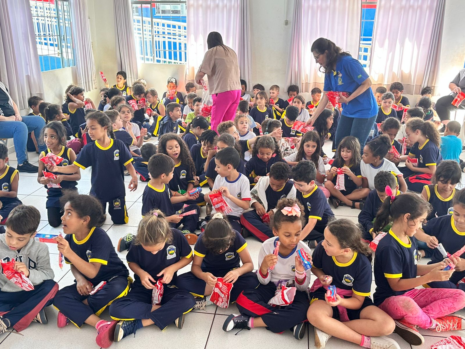 A Escola Municipal Senador Marcos de Barros Freire, localizada no Jardim Ponta Grossa, foi a primeira a receber os kits na última terça-feira (14/10). Além da entrega, os alunos também participaram de uma palestra educativa sobre escovação correta dos dentes, ministrada pela dentista Carla Faiad, integrante do Lions Clube Vitória Régia.