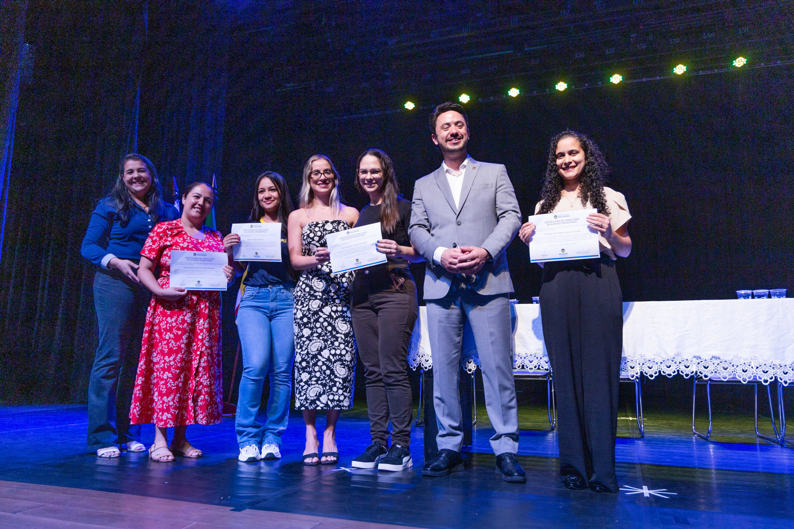 A secretária municipal de Educação, professora Ana Paula do Carmo Donato, participou de um encontro da Undime-Paraná em Foz do Iguaçu e, por esse motivo, não pôde estar presente à cerimônia. Mesmo à distância, enviou mensagem destacando a importância do momento para a rede municipal. “Os que acabam de tomar posse iniciam um novo ciclo de aprendizado e compromisso. Já os que concluíram o estágio probatório celebram o reconhecimento por três anos de dedicação. A todos, desejo muito sucesso e reforço que podem sempre contar com o meu apoio e o da equipe da Autarquia. Vamos juntos cuidar das nossas crianças e construir o futuro de Apucarana”, afirmou.