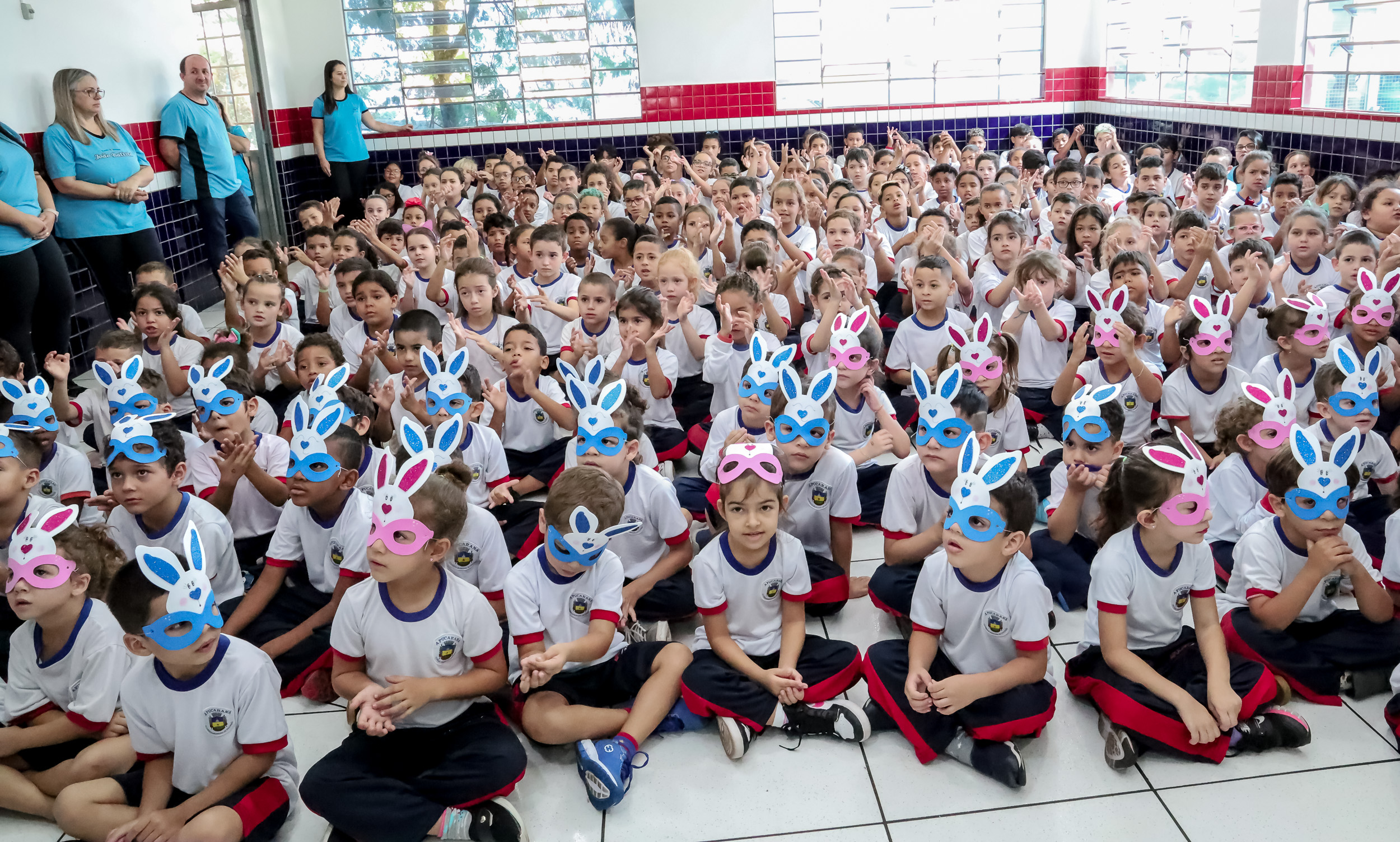 A Páscoa é uma data comemorativa muito aguardada pelas crianças, tempo de celebrar a vida e de comer guloseimas. Nesta quinta-feira (6/4), dando sequência à tradição, a Prefeitura de Apucarana distribuiu caixas de bombons aos mais de doze mil alunos da rede municipal de educação. O prefeito Junior da Femac, a secretária Marli Fernandes e os vereadores Mário Felippe, Tiago Cordeiro e Mauro Bertoli acompanharam a ação no CMEI Josa Ribeiro (Vila Martins) e na Escola João Batista (Vila Vitória Régia).