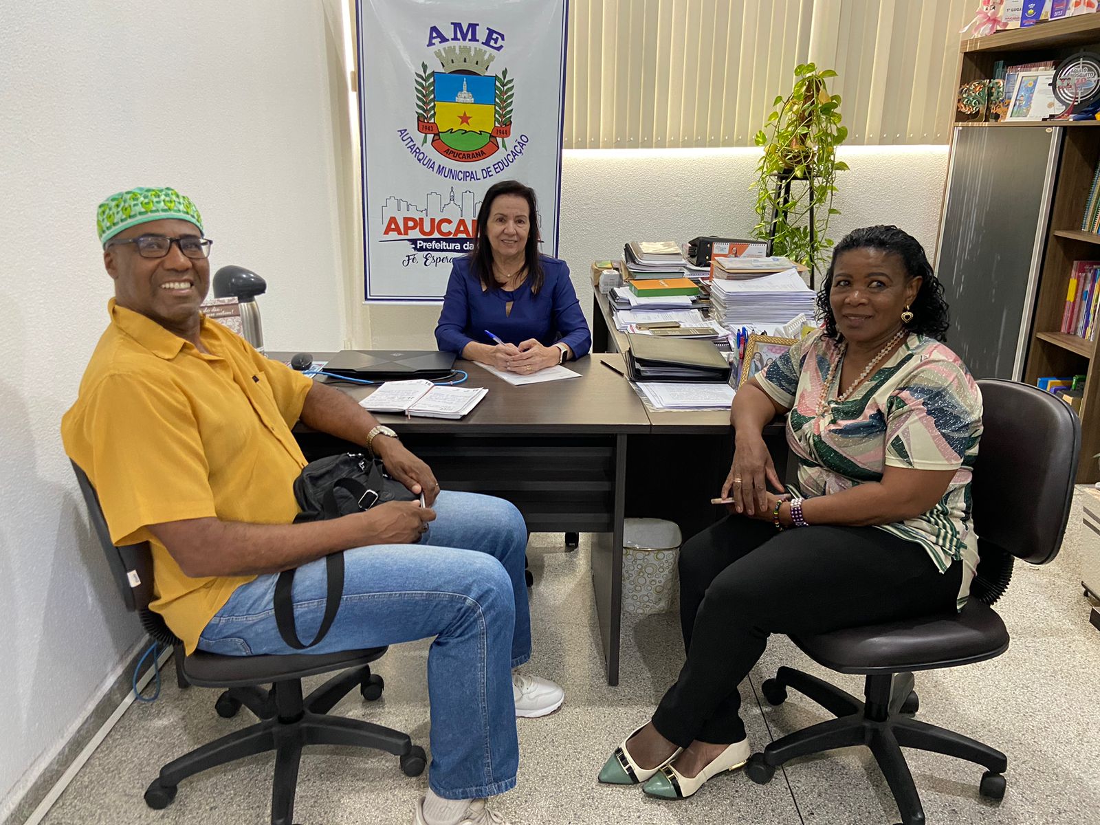 A secretária municipal de educação, Professora Marli Fernandes, reuniu-se, recentemente com o representante do Conselho Municipal de Promoção da Igualdade Racial (CMPIR), Carlos Figueiredo, e com a pesquisadora do Laboratório de Cultura e Estudos Afro-Brasileiros da Universidade Estadual de Londrina (UEL), Dra. Adevanir Aparecida Pinheiro. Durante o encontro, os três conversaram sobre como a questão da diversidade étnico-racial deve ser incluída no Plano Municipal pela Primeira Infância (PMPI) de Apucarana.