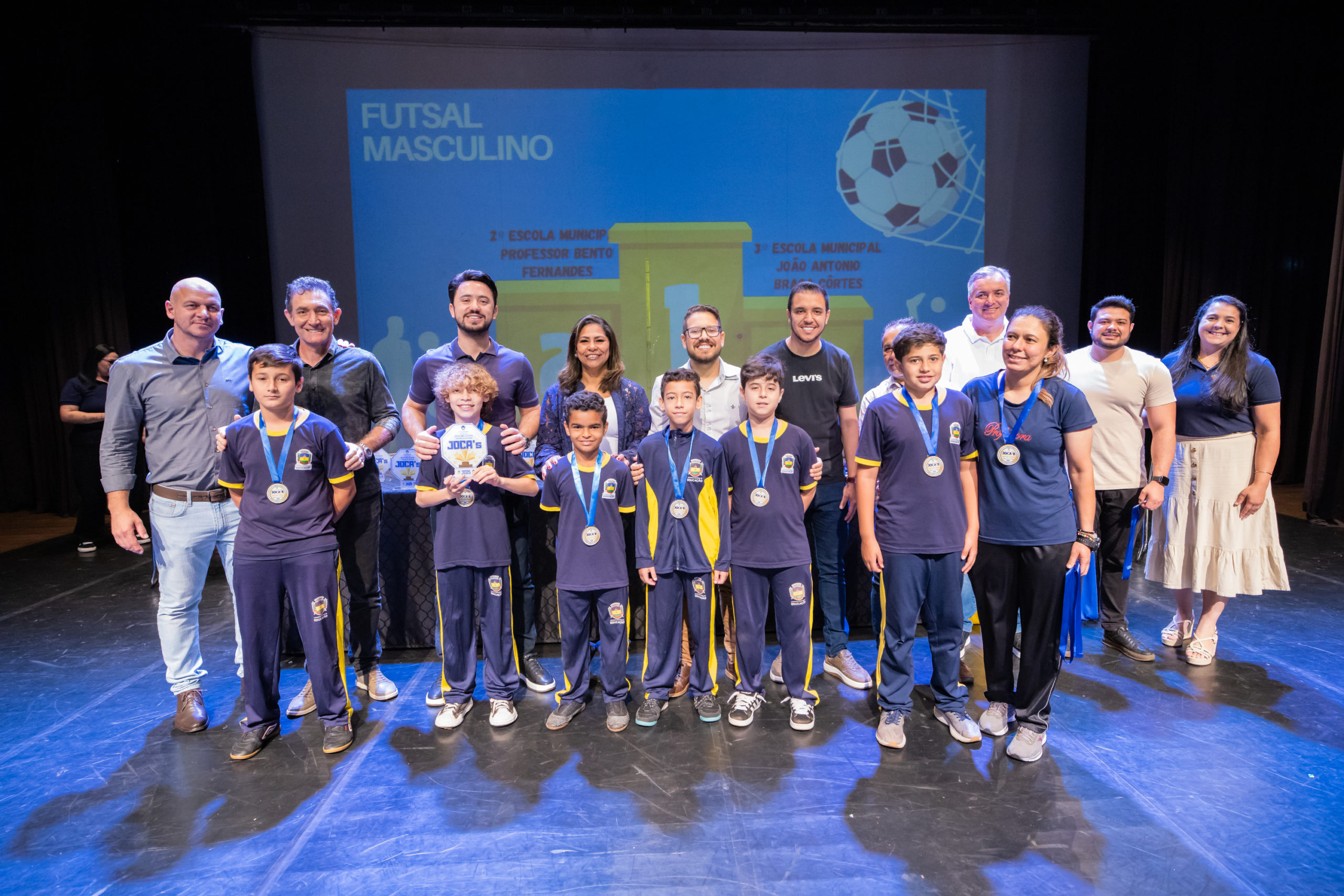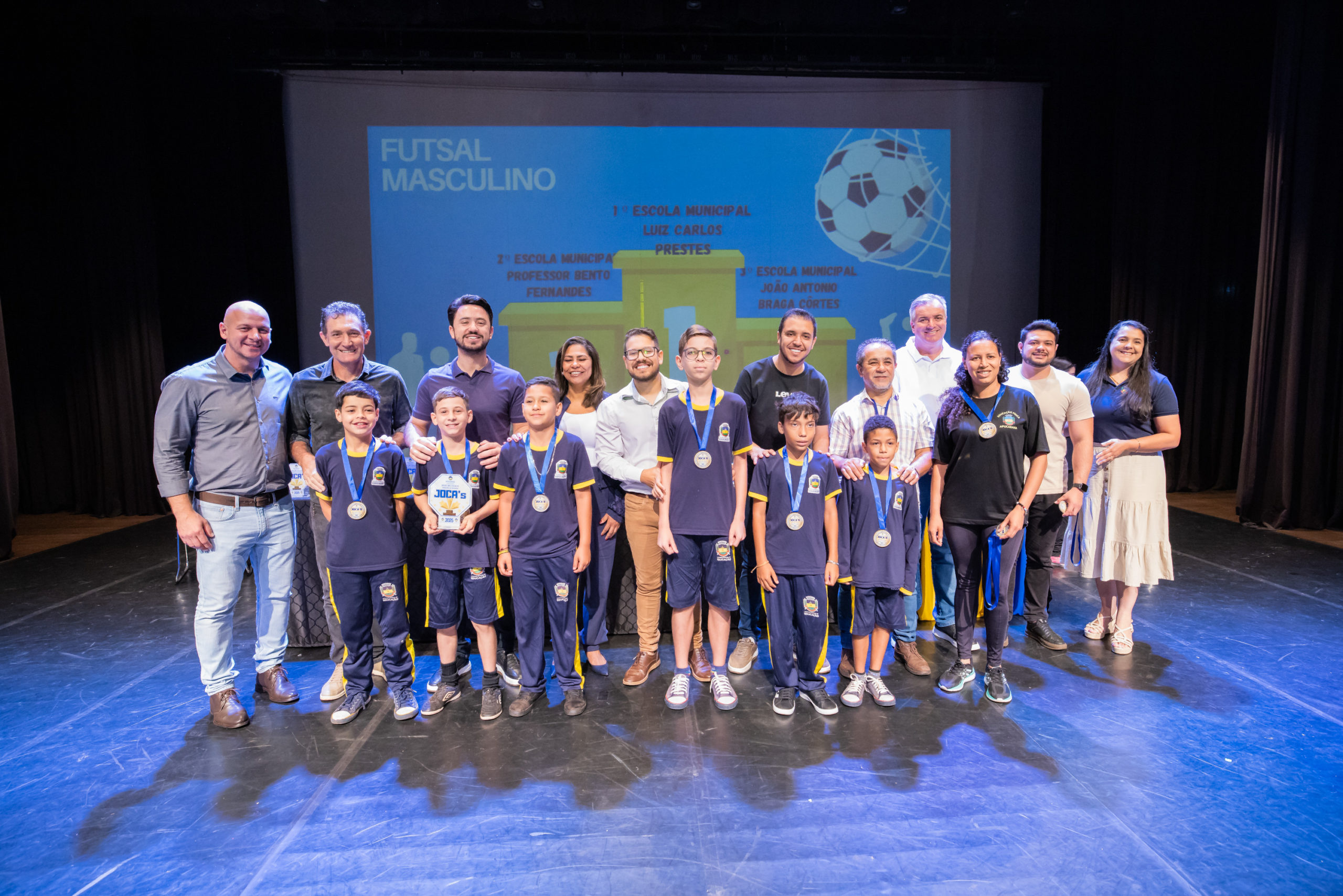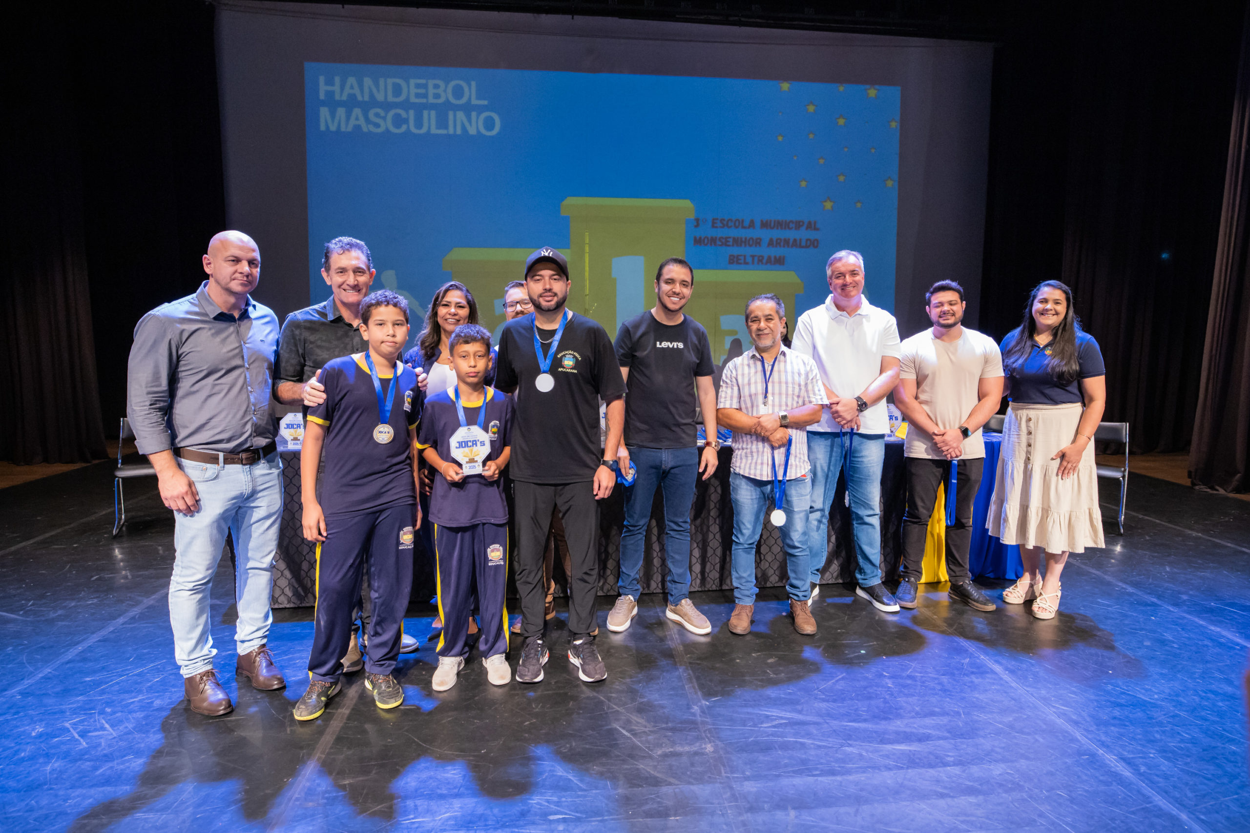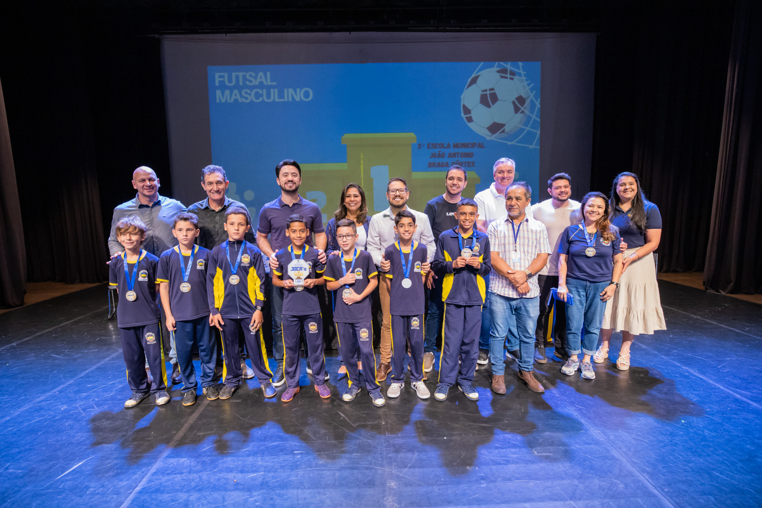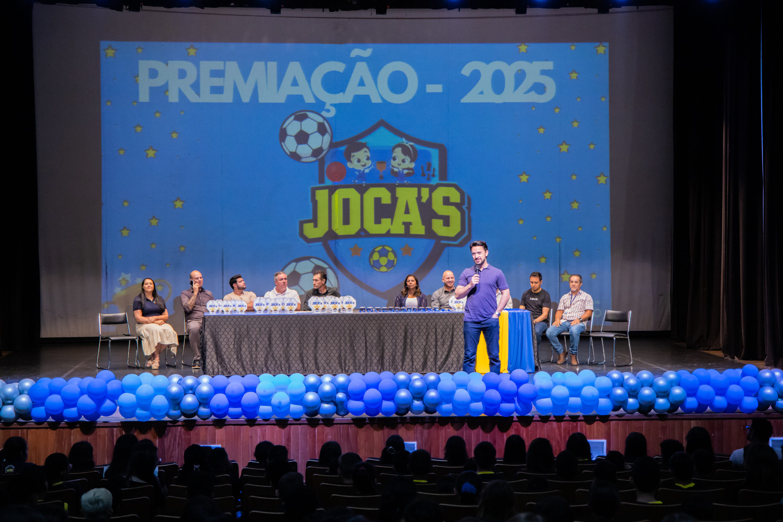 A Prefeitura de Apucarana, por meio da Autarquia Municipal de Educação (AME) e da Secretaria Municipal de Esportes, realizou na manhã desta quinta-feira (11/12), no Cine Teatro Fênix, a cerimônia de premiação dos estudantes, professores e equipes que se destacaram na 9ª edição dos Jogos das Crianças (JOCAS). A iniciativa celebrou o desempenho dos participantes e reforçou o papel do esporte na formação cidadã.
