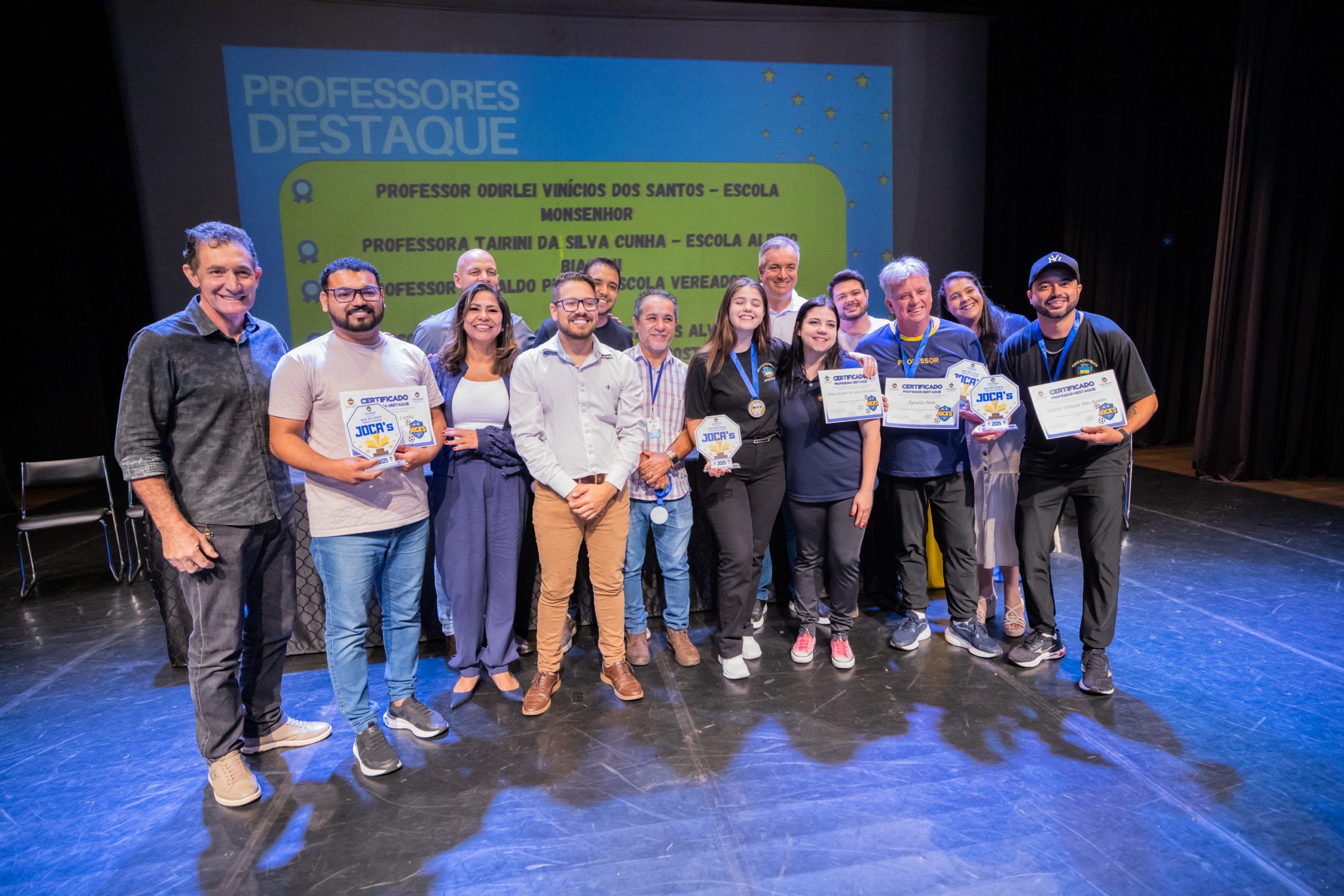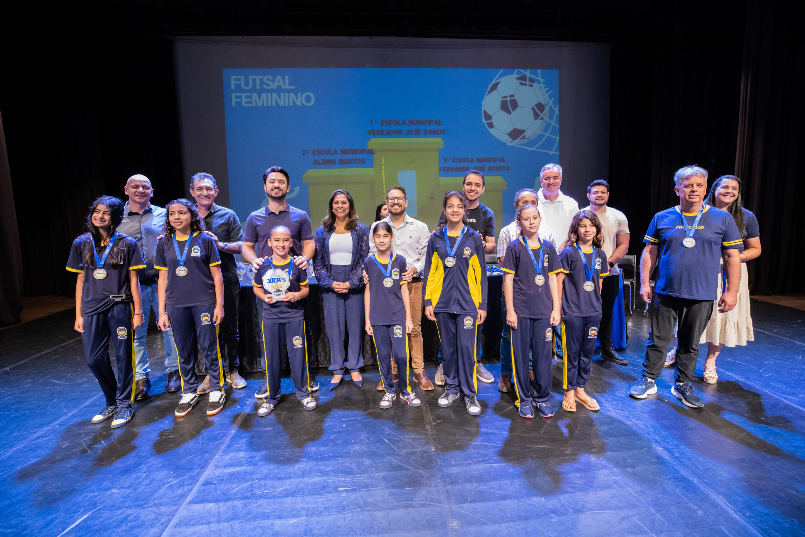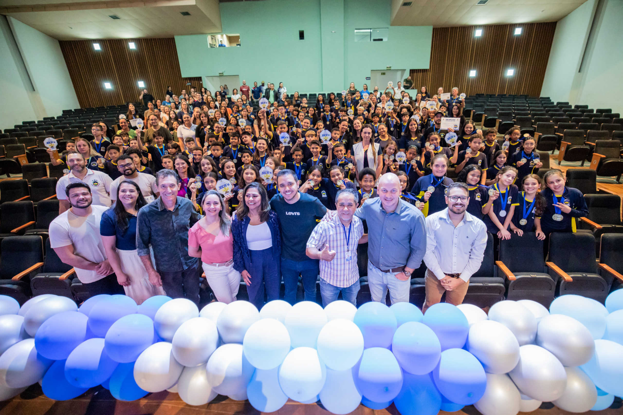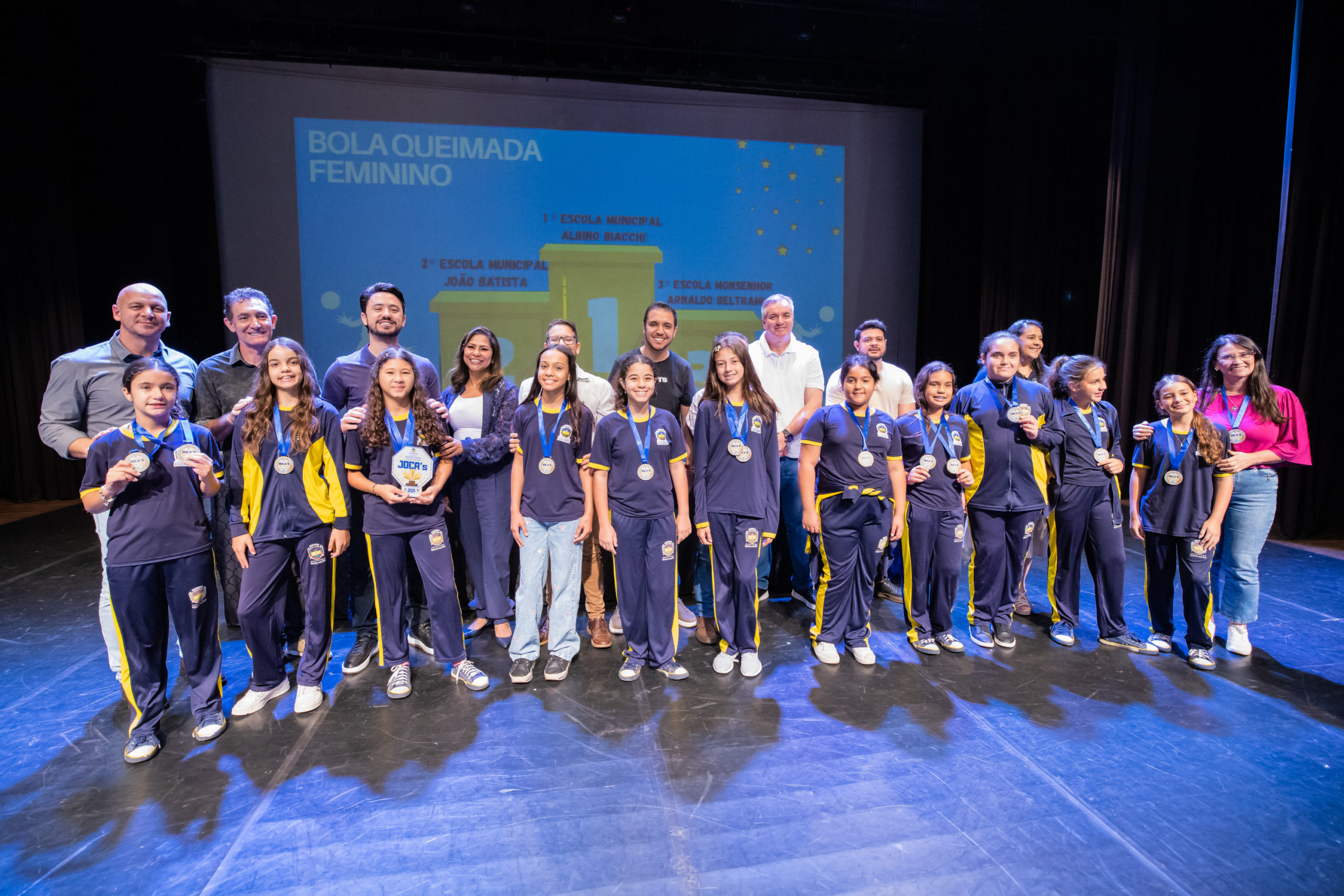 A Prefeitura de Apucarana, por meio da Autarquia Municipal de Educação (AME) e da Secretaria Municipal de Esportes, realizou na manhã desta quinta-feira (11/12), no Cine Teatro Fênix, a cerimônia de premiação dos estudantes, professores e equipes que se destacaram na 9ª edição dos Jogos das Crianças (JOCAS). A iniciativa celebrou o desempenho dos participantes e reforçou o papel do esporte na formação cidadã.