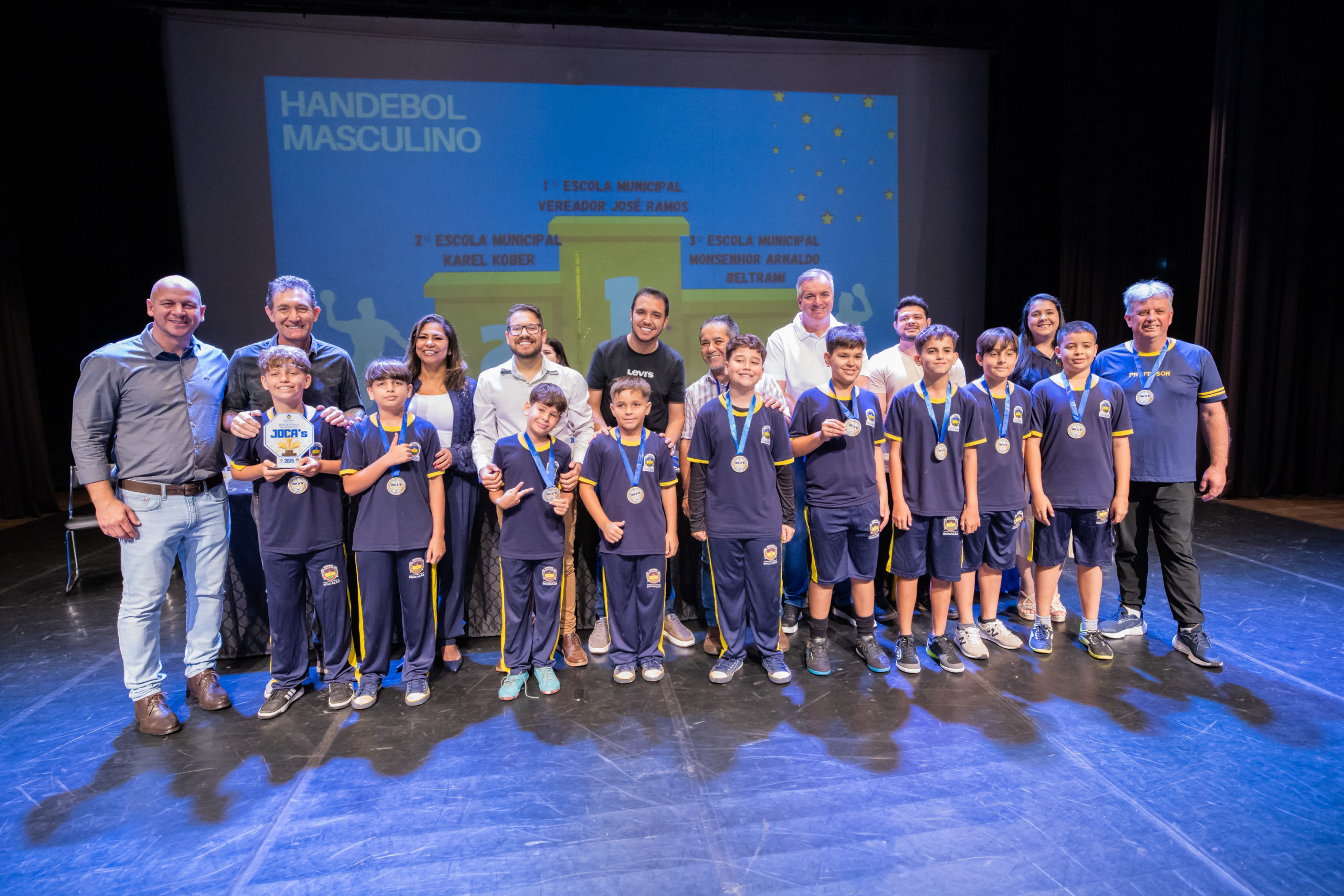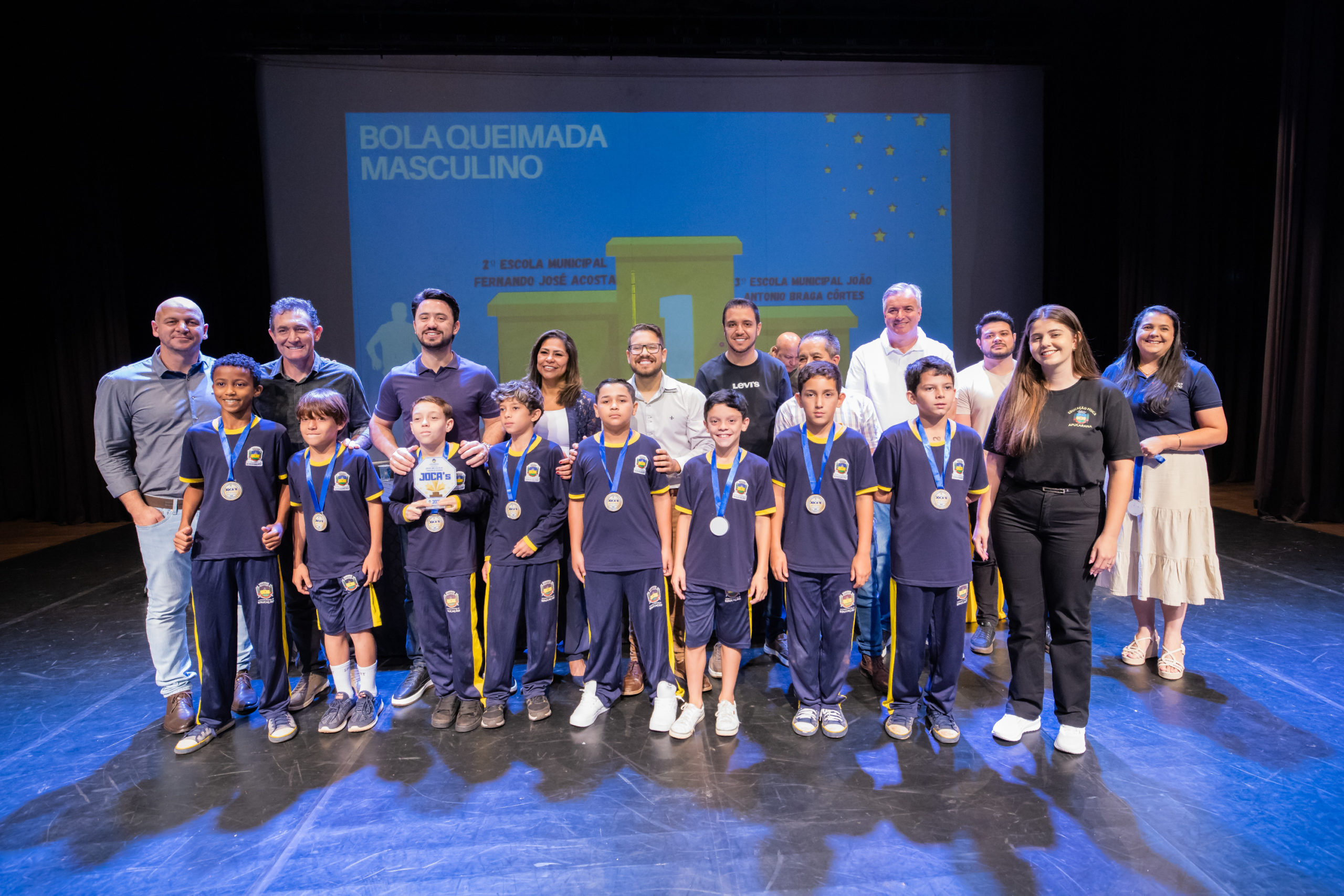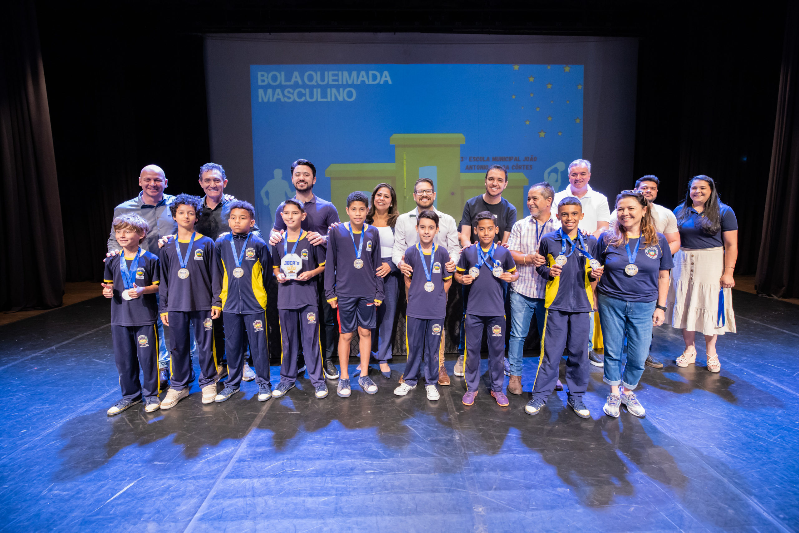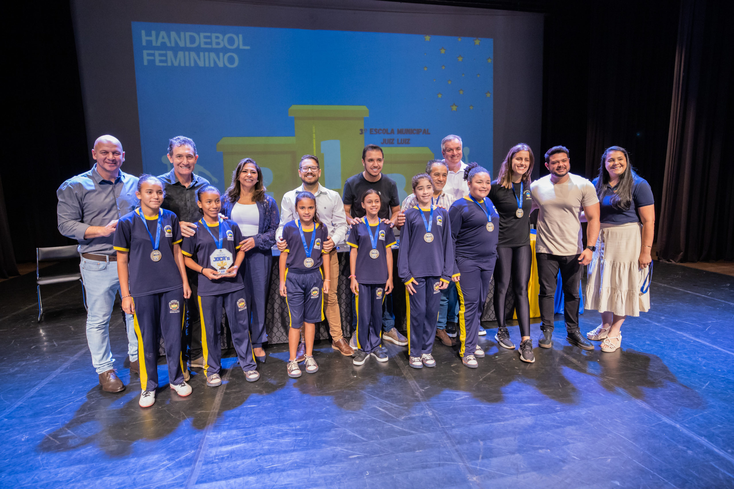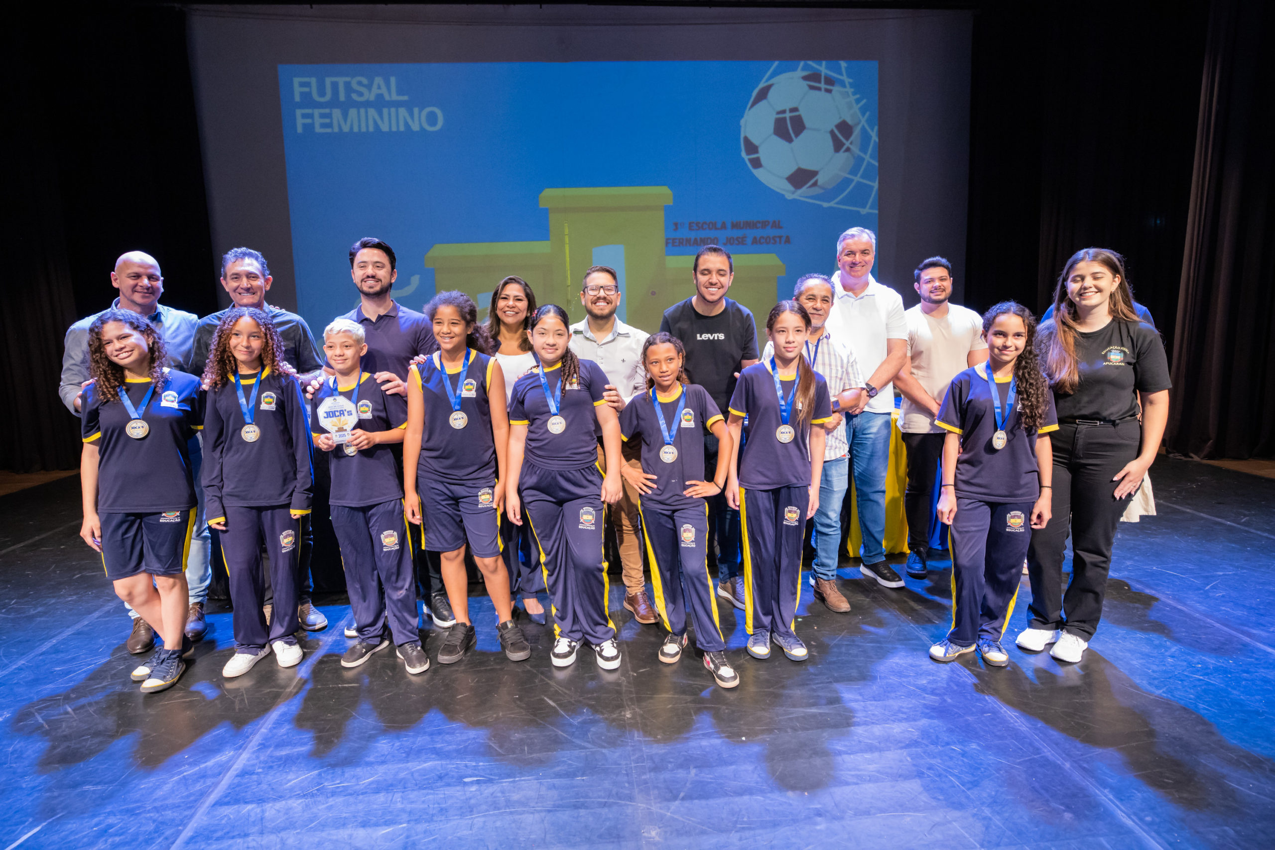 A Prefeitura de Apucarana, por meio da Autarquia Municipal de Educação (AME) e da Secretaria Municipal de Esportes, realizou na manhã desta quinta-feira (11/12), no Cine Teatro Fênix, a cerimônia de premiação dos estudantes, professores e equipes que se destacaram na 9ª edição dos Jogos das Crianças (JOCAS). A iniciativa celebrou o desempenho dos participantes e reforçou o papel do esporte na formação cidadã.