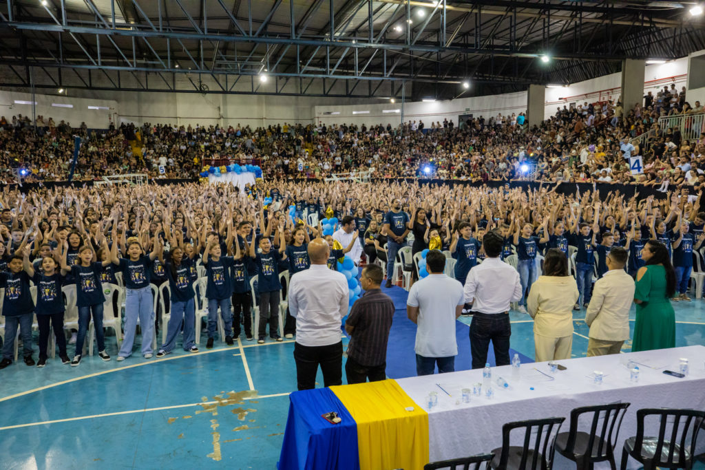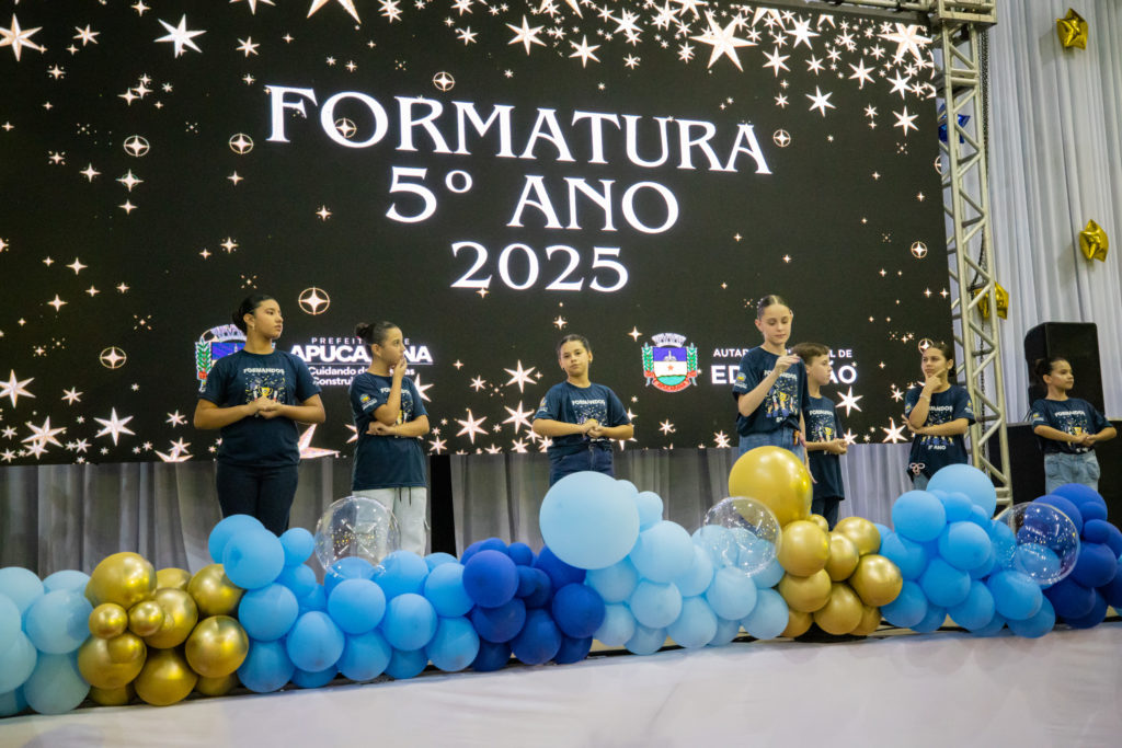 A Prefeitura de Apucarana, por meio da Autarquia Municipal de Educação (AME), realizou na noite de ontem (1º/12) a formatura das turmas do 5º Ano da rede municipal. A cerimônia, realizada no Ginásio de Esportes Lagoão, celebrou a conquista de 1.370 estudantes de 35 escolas, que receberam os certificados de conclusão da primeira etapa do Ensino Fundamental. No sábado (29/11), a rede já havia diplomado 1.280 crianças que encerram em 2025 o ciclo da Educação Infantil.