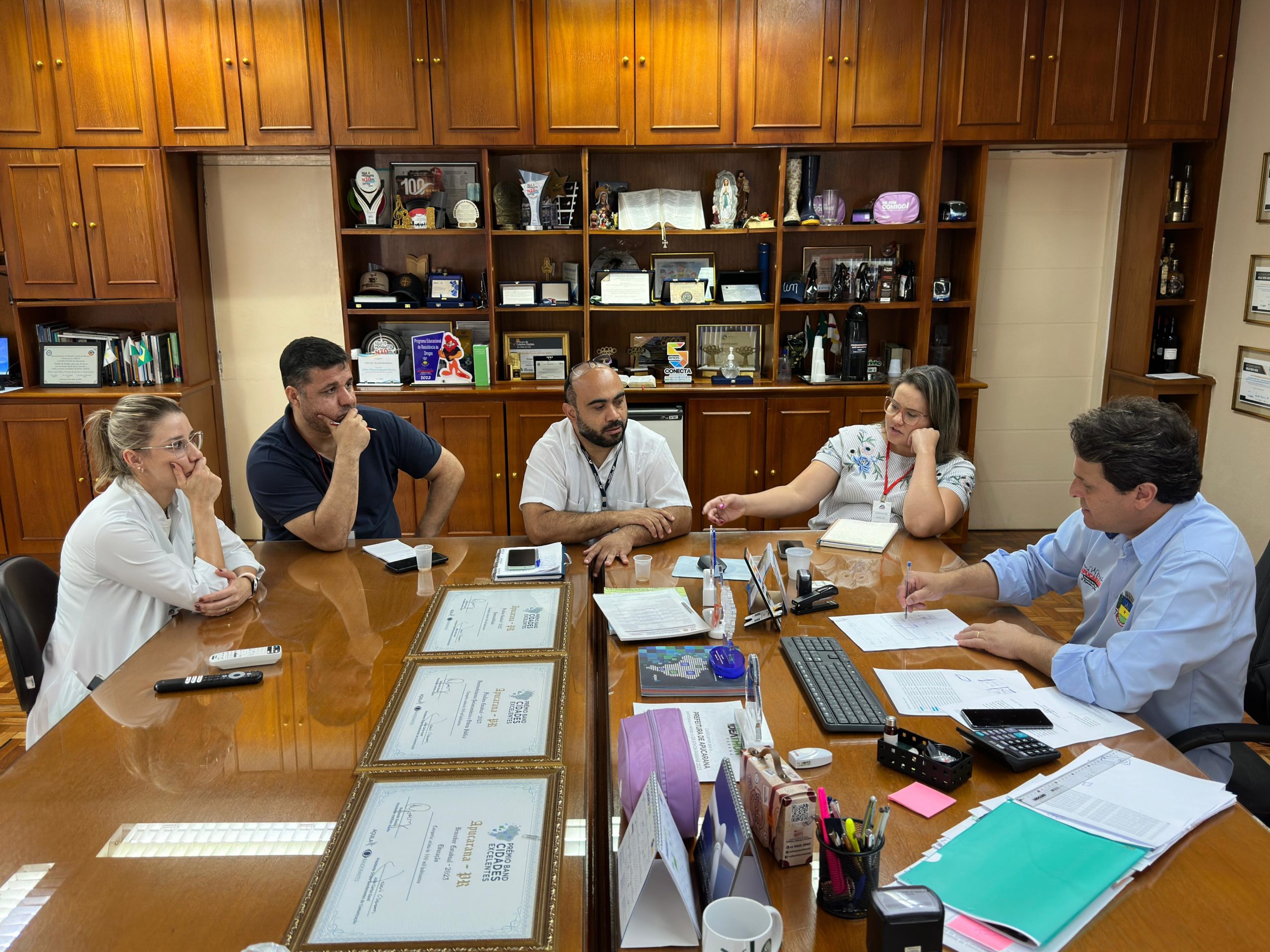 Participaram da reunião no gabinete do prefeito, Luciano Simplício Sobrinho (coordenador da epidemiologia), Jordana Maroneze (Estratégia Saúde da Família), Odarlone Orente (superintendente da Atenção Básica em Saúde) e a engenheira da AMS Ana Karine Alves Vieira. O secretário de saúde, Emídio Bachiega, participou do encontro de forma remota, em decorrência do falecimento de sua mãe, anteontem, em Londrina.