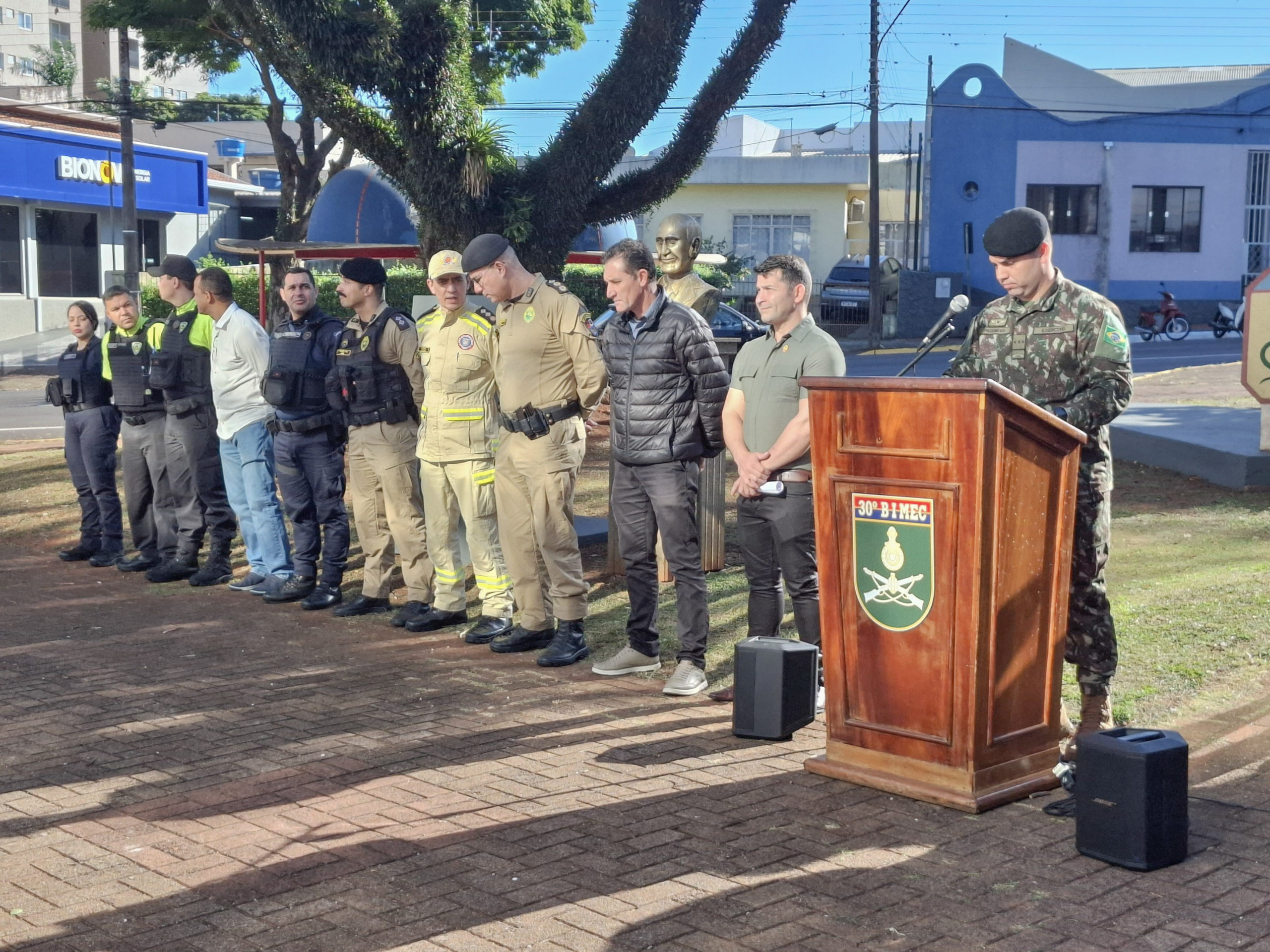 Também estiveram presentes o subcomandante do 30º Batalhão de Infantaria Mecanizado, major João Batista Woll Severo, tenente-coronel Robson Falk Vieira, comandante do 10º Batalhão de Polícia Militar (BPM), Pablo Aparecido Rocha Pereira, comandante da Guarda Civil Municipal (GCM), major Leandro José Callegari, comandante do 11º Grupamento de Bombeiros (GB), e do major Vilson Laurentino da Silva, secretário municipal de Segurança e Trânsito. O vereador Wellington Gentil representou o Legislativo.