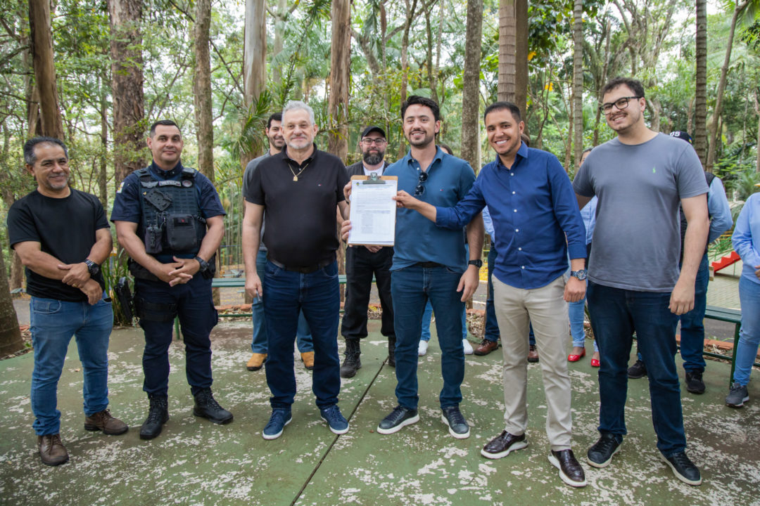 O prefeito Rodolfo Mota assinou nesta quinta-feira (02/10), no Bosque Municipal, ordem de serviço para construção de 11 novos viveiros. O investimento é de R$ 341,5 mil, com recursos municipais, fruto de processo licitatório que teve como vencedora a empresa Adnilson Grandi Metalúrgica. Na mesma solenidade, o prefeito também autorizou obras de alargamento de calçadas entre os ambientes, criando uma rota acessível para pessoas com deficiência, melhorias que serão executadas pela equipe da Secretaria Municipal de Obras. O ato contou com a presença dos vereadores José Deco de Araújo e Guilherme Livoti, além de secretários municipais e convidados.