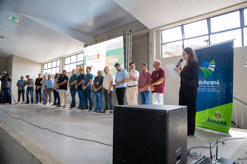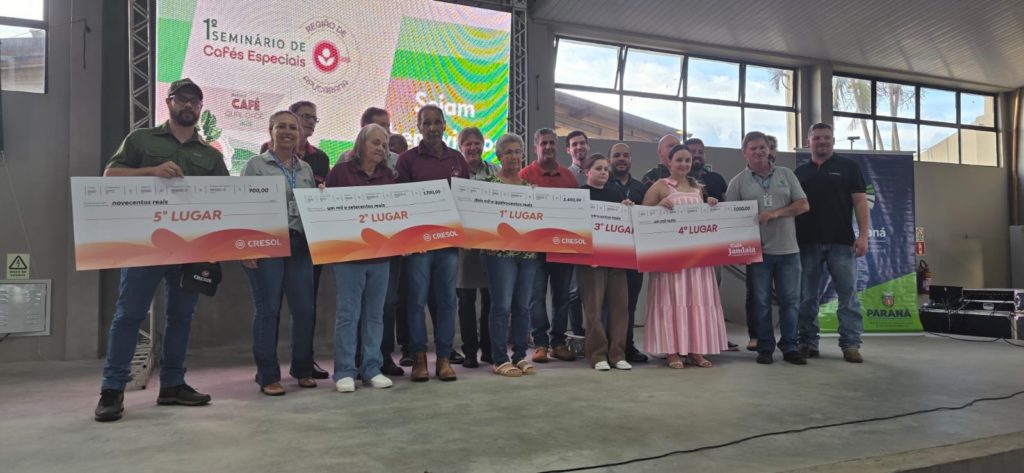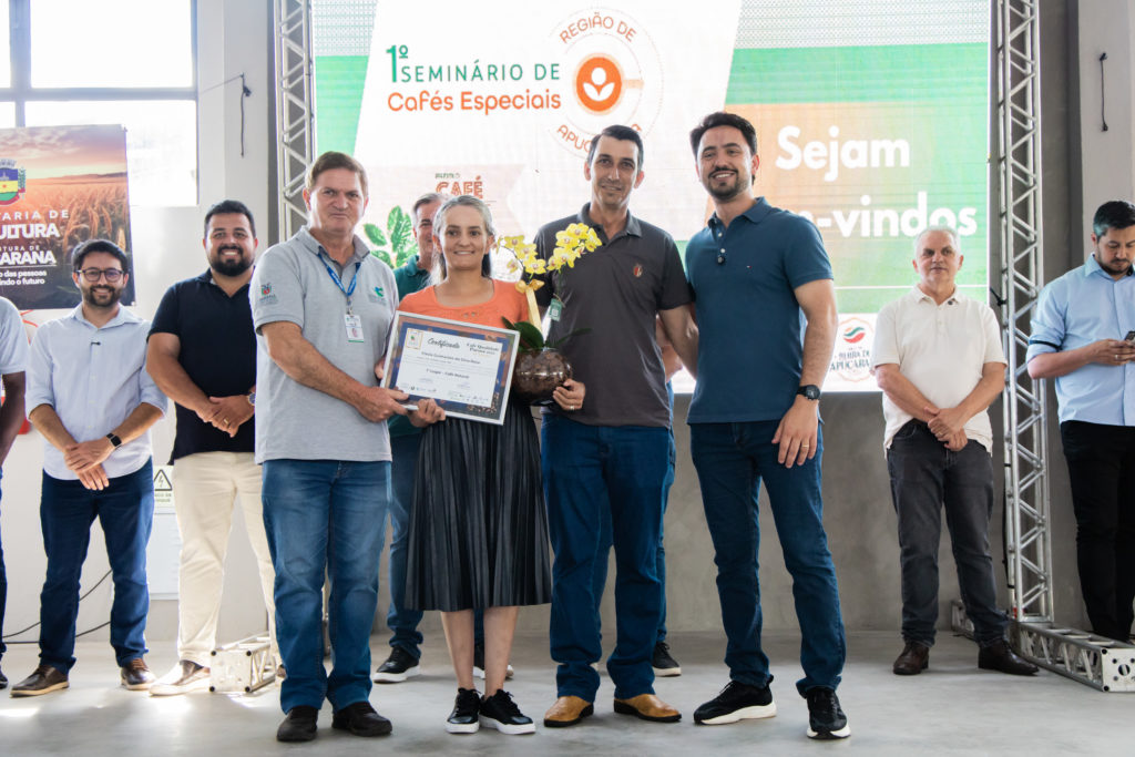 Homenagens – Durante o evento também foram entregues homenagens a cafeicultores premiados na categoria Café Natural durante a 23ª edição do Concurso Café Qualidade Paraná, realizado no dia 25 de novembro em Curitiba, competição que envolveu a análise de mais de 100 amostras enviadas por produtores paranaenses. Na ocasião, a cafeicultora apucaranense Flávia Guimarães da Silva Rosa conquistou o primeiro lugar e o produtor Valdeci Navarro, de Jandaia do Sul, ficou na quinta posição.