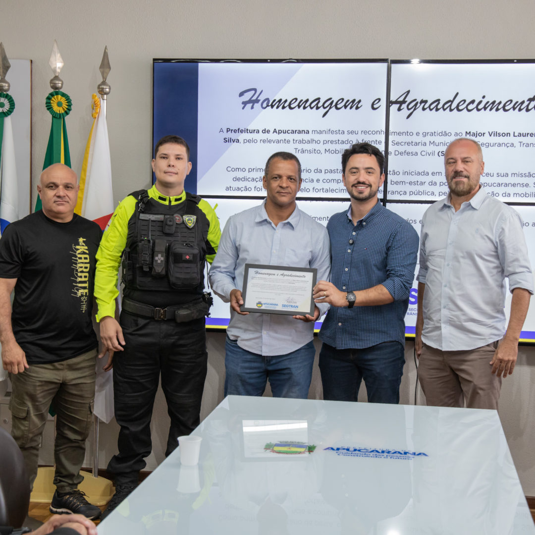 O major Vilson também fez questão de elogiar o sucessor, lembrando a trajetória de ambos na Polícia Militar. Ele destacou que a escolha do subtenente Almir garante que os projetos em andamento não sofram interrupção. “O Almir é uma pessoa trabalhadora e técnica. Estivemos juntos em momentos difíceis no passado e, agora, ver essa transição me deixa feliz, pois sei que a secretaria está em mãos sérias e comprometidas com o futuro de Apucarana”, pontuou.