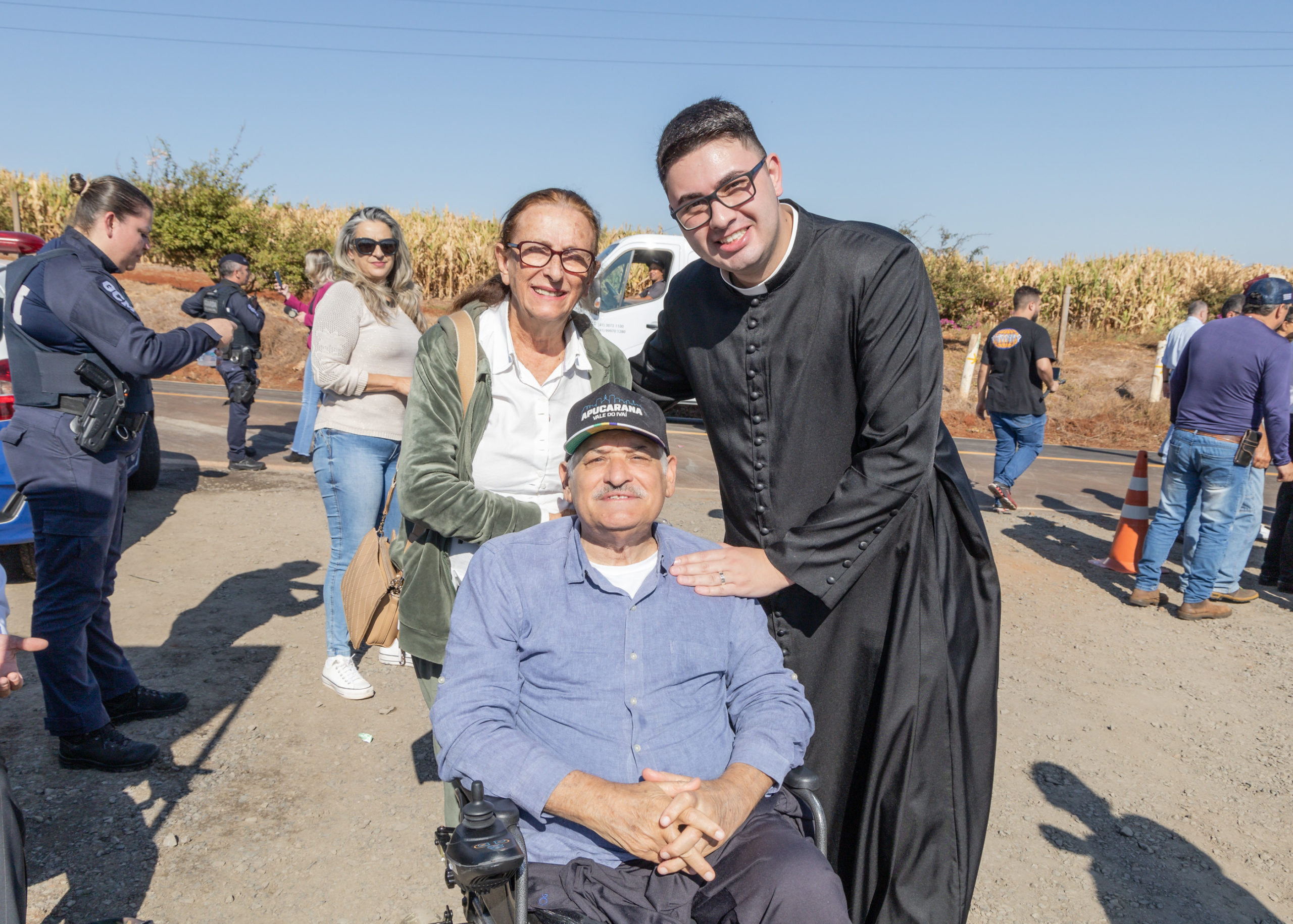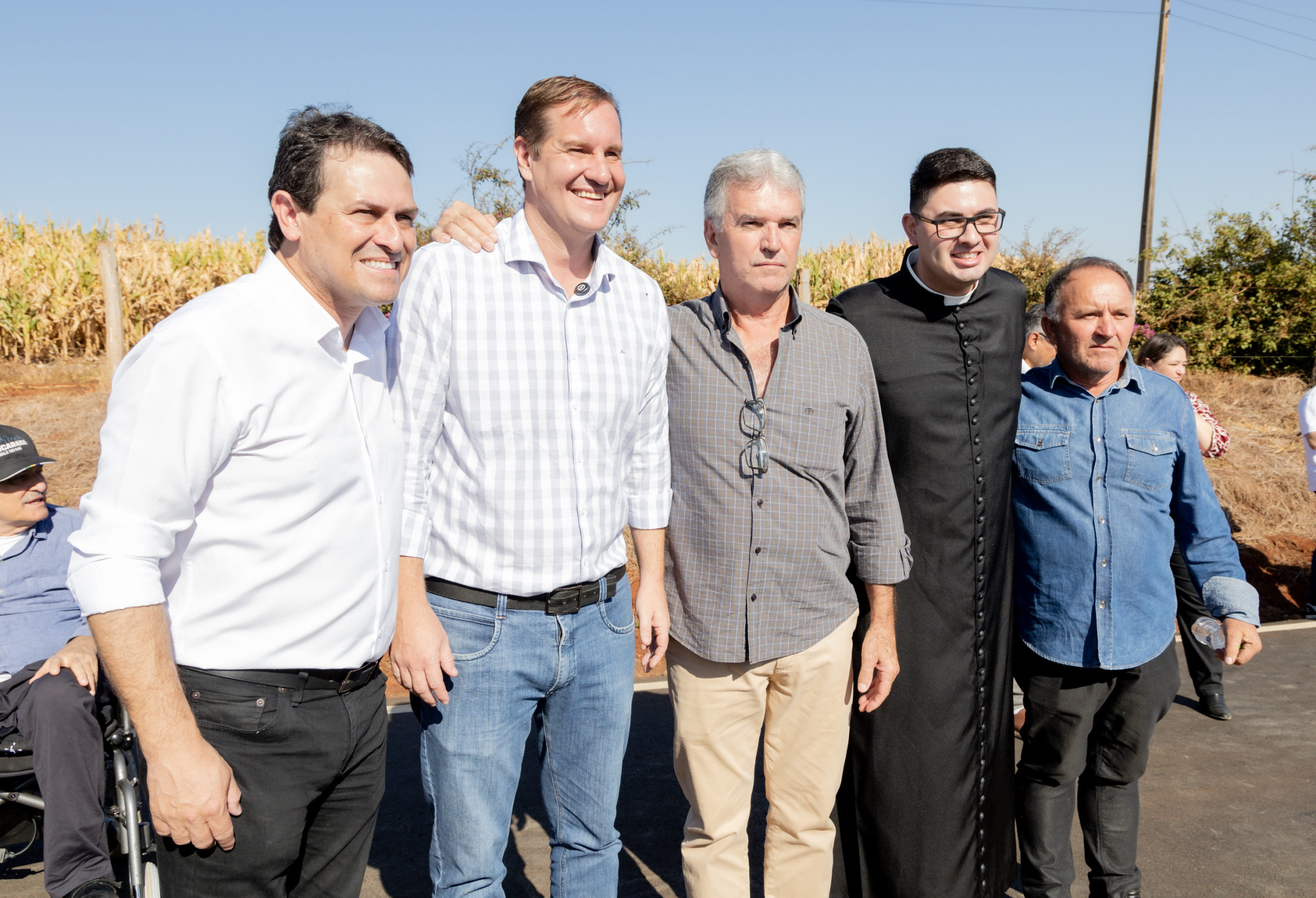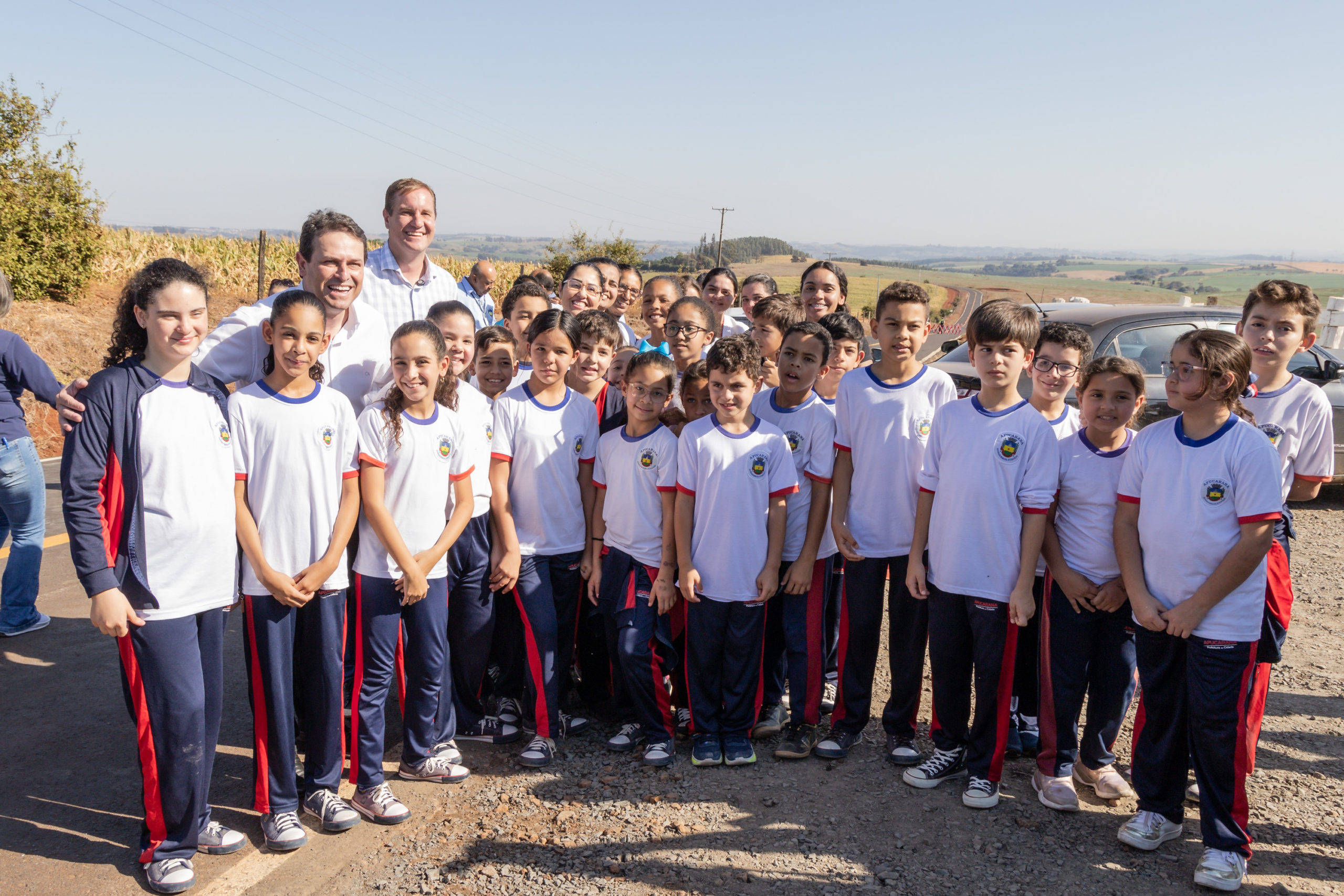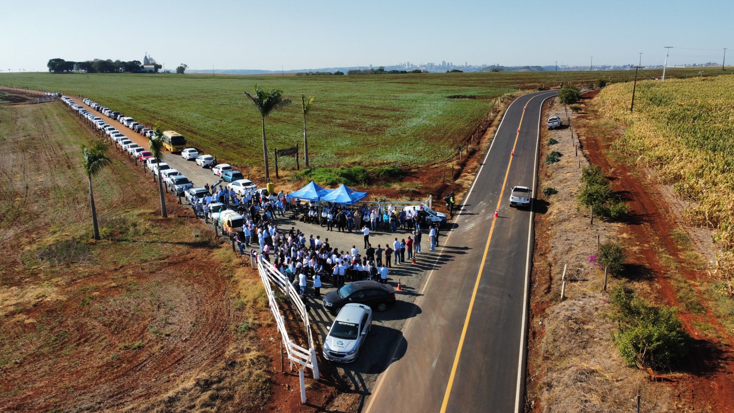 De um lado, uma fileira de moradores e estudantes segurava a faixa do Distrito de Pirapó e a eles se juntou um outro grupo, portando a faixa que representava o Distrito de Caixa de São Pedro. O ponto de encontro foi o acesso à Fazenda Colina, praticamente na divisa entre os distritos, e todos tinham um objetivo em comum: celebrar o progresso e a pavimentação de 11,5 quilômetros que liga as duas comunidades.