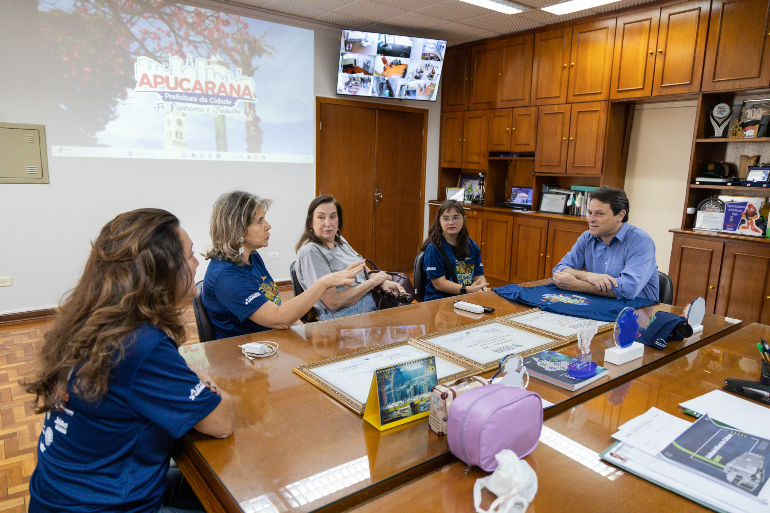 A reunião, realizada no gabinete municipal, contou ainda com a presença de Fabíola Godoi Acosta, presidente da Associação, que esteve acompanhada de Maria de Lourdes, integrante da diretoria, e de Liana Lopes Bassi, diretora técnica científica da entidade e presidente da Federação Paranaense de Associações de Síndrome de Down (FEPASD).