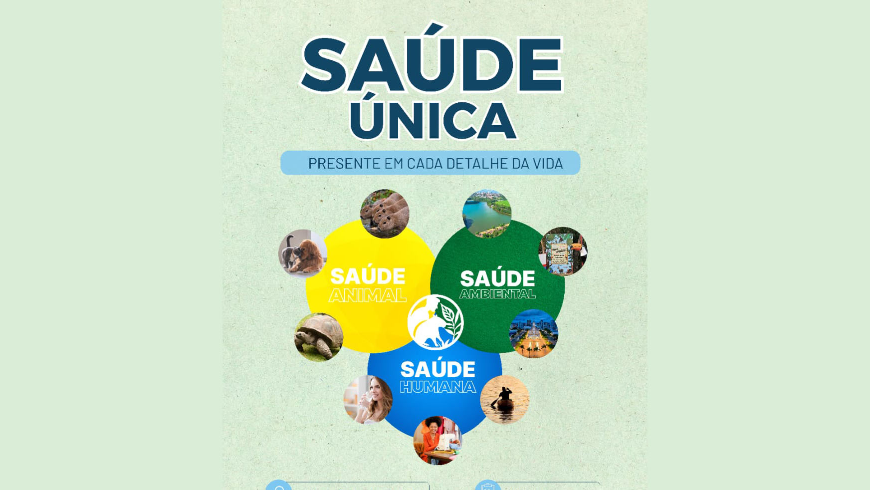 - Saúde animal: Abrange a saúde de animais domésticos, de produção e silvestres.