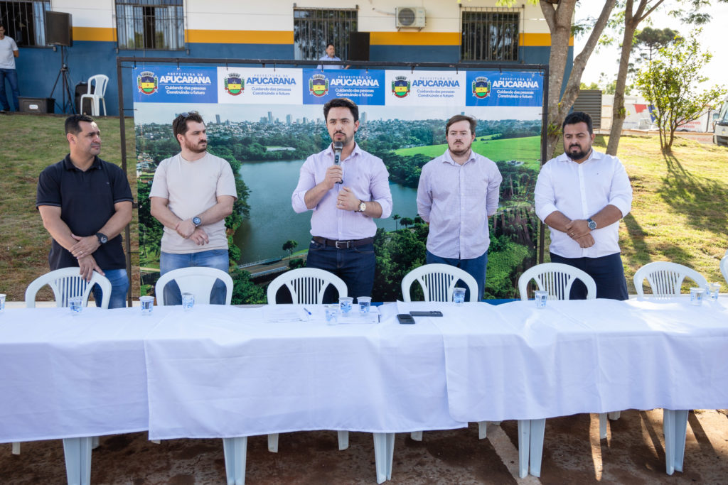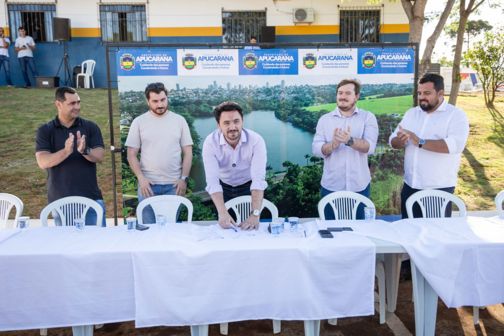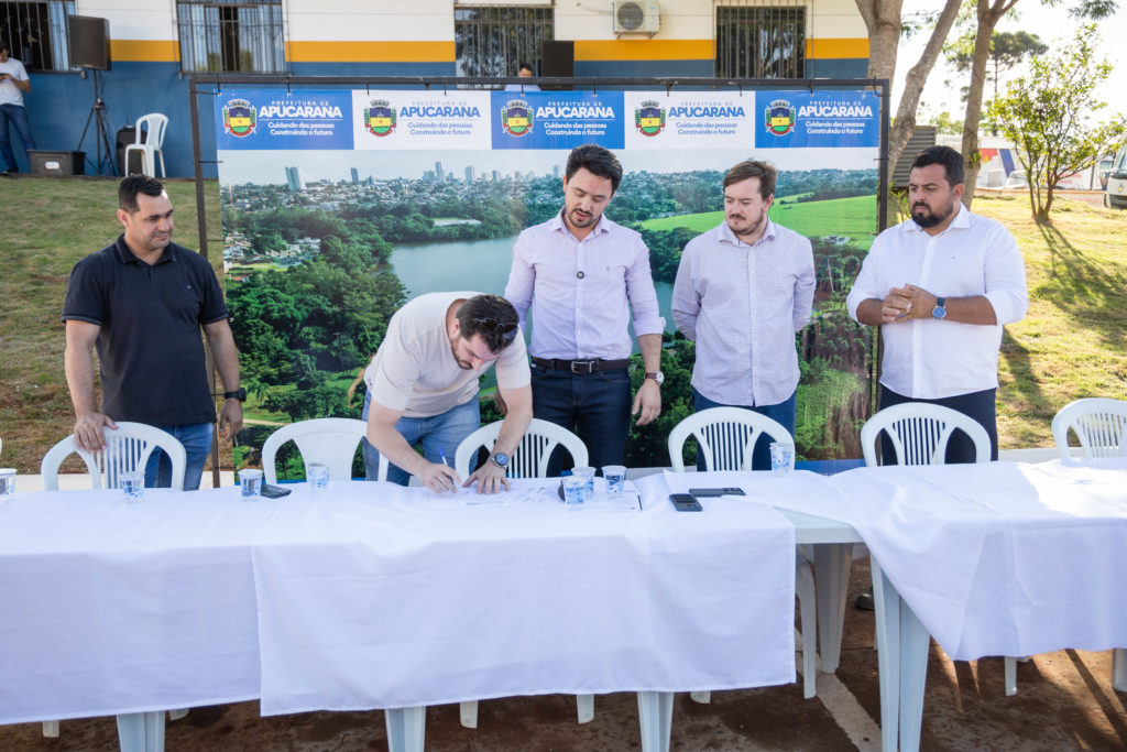 O prefeito Rodolfo Mota autorizou nesta quinta-feira (27/12) o início das obras de construção de refeitório e área de repouso destinada aos servidores municipais lotados na Secretaria de Serviços Públicos. A ordem de serviço foi assinada em evento no pátio de máquinas da Prefeitura de Apucarana. O início dos trabalhos está previsto para o dia 5 de janeiro, com prazo de 10 meses para conclusão. A licitação, vencida pela Construtora Canterteze Ltda, de Arapongas, prevê investimento na ordem de R$ 994.999,90 em recursos municipais. Além de membros do secretariado municipal, prestigiou o ato o vereador Pablo da Segurança.