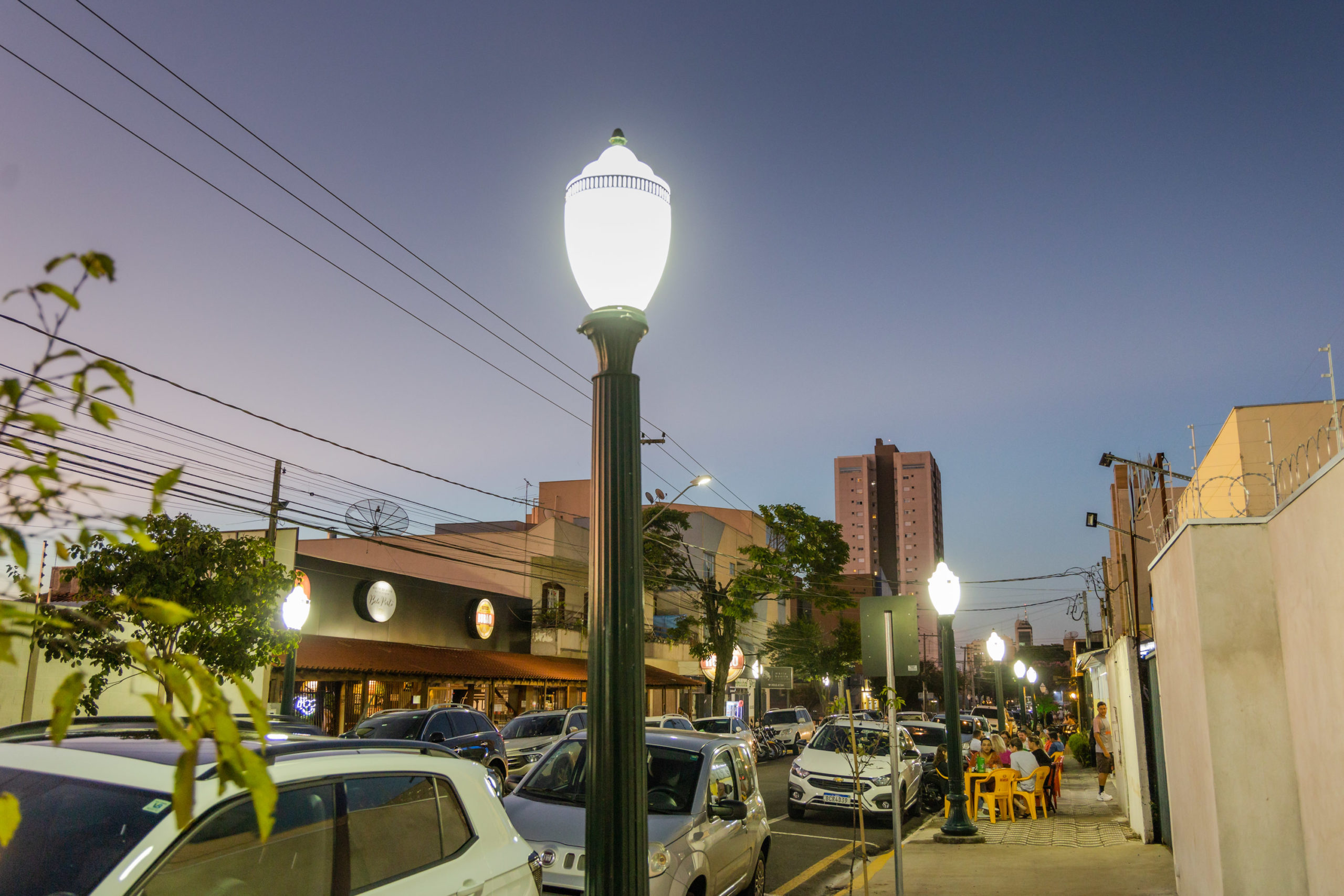 Todo o trecho gastronômico da Rua Oswaldo Cruz conta agora com um sistema de iluminação mais eficiente e com um visual atrativo. Além dos 94 postes republicanos que já haviam sido instalados, a empresa contratada concluiu nesta semana a implantação de mais 50 postes, acessórios e luminárias.