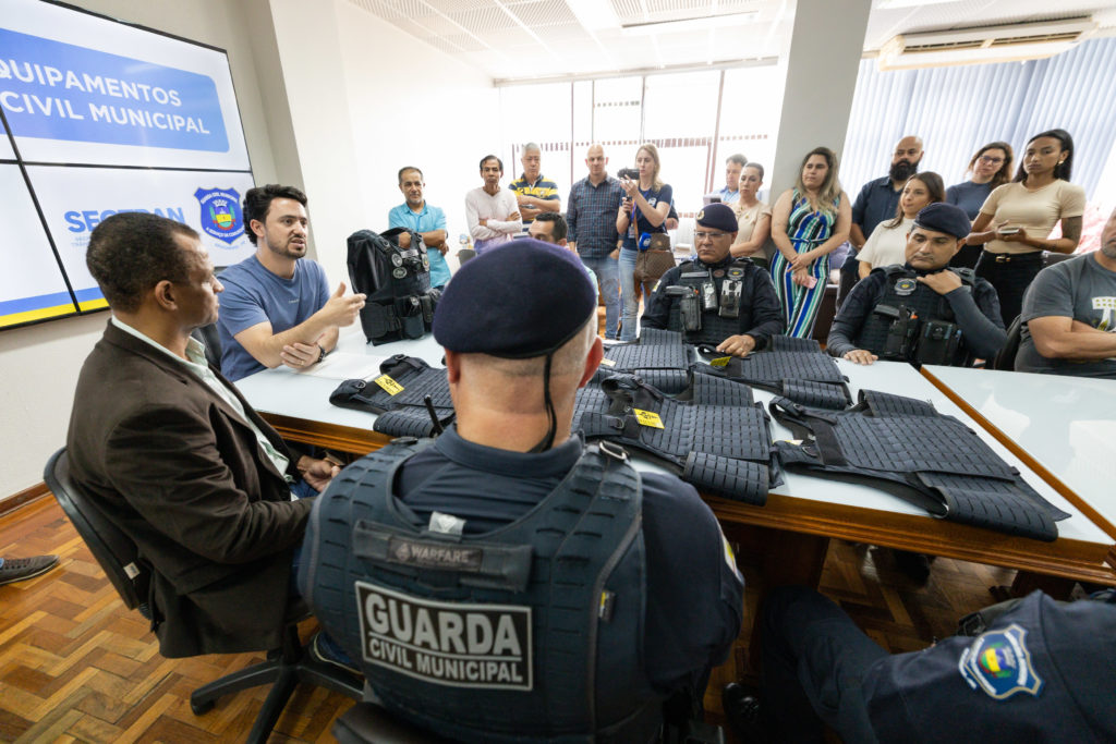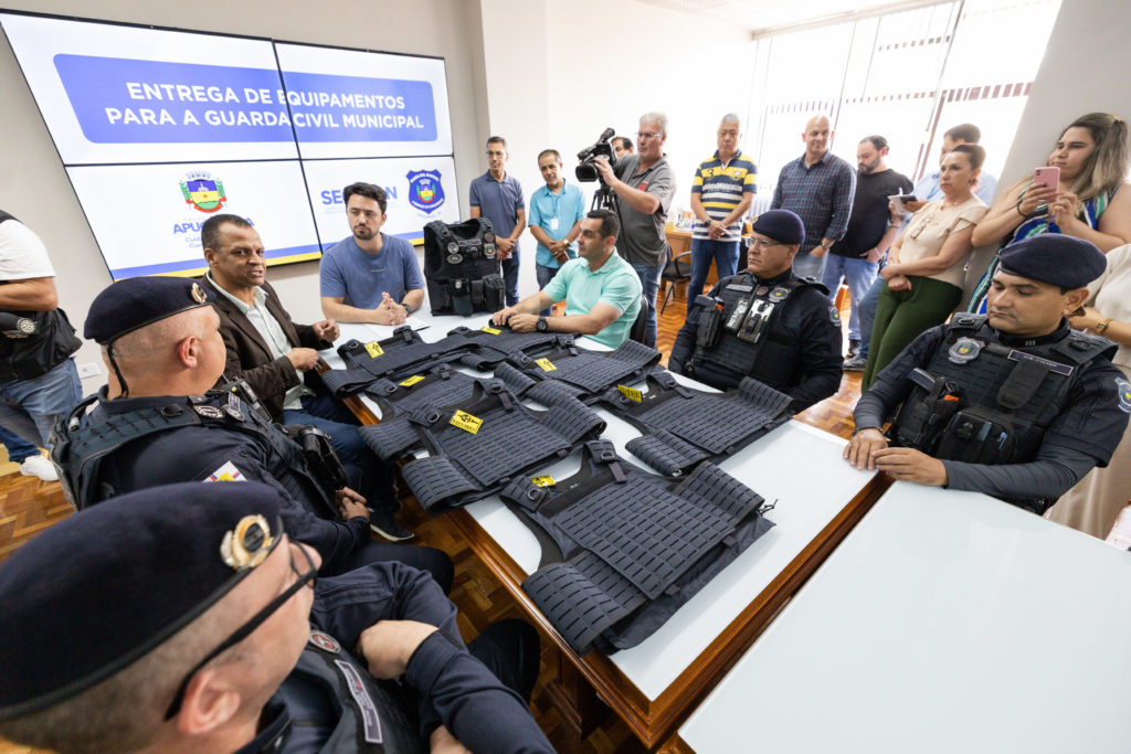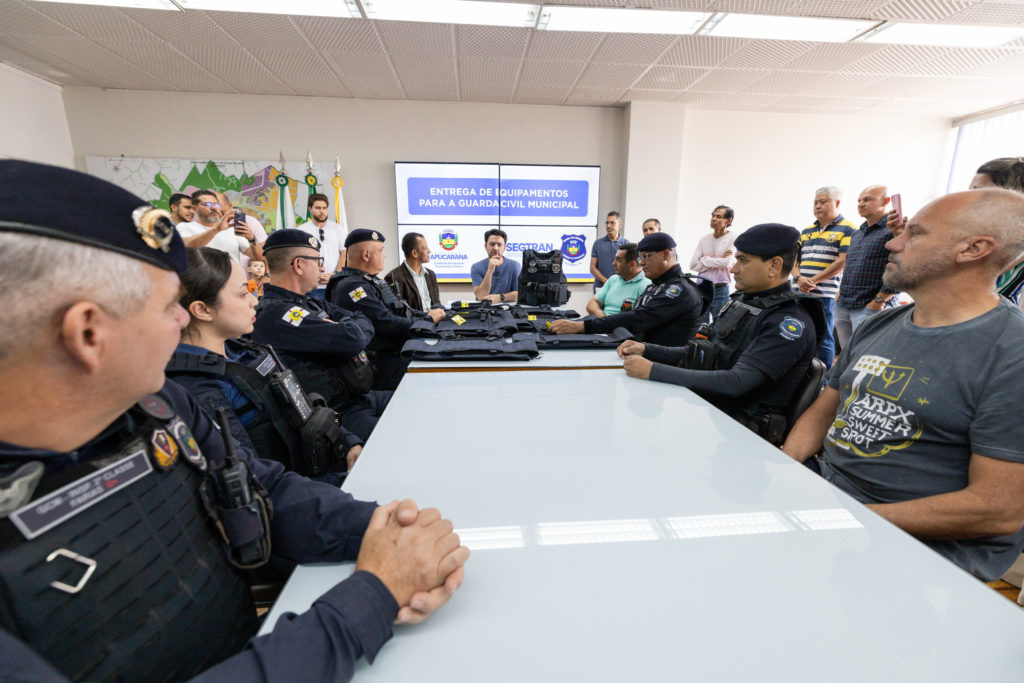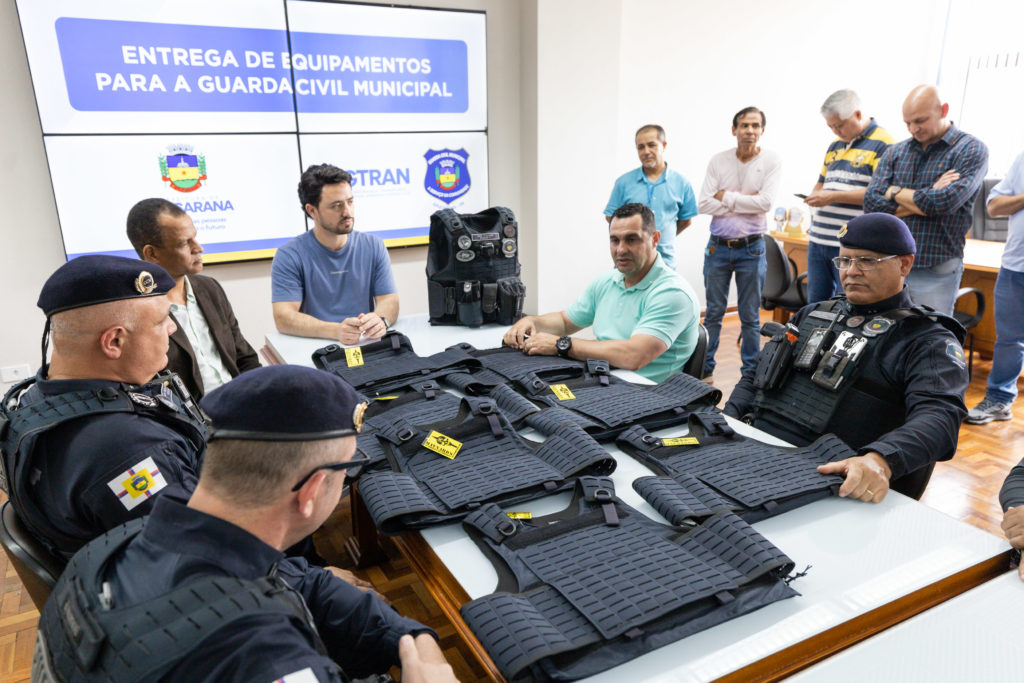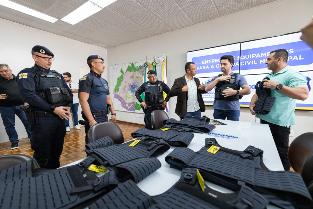 A Guarda Civil Municipal de Apucarana (GCM) recebeu nesta quinta-feira (16/10) um conjunto de 79 capas de colete tático modular. Os equipamentos de proteção individual (EPI’s), que visam garantir a segurança dos agentes durante o trabalho, foram apresentados oficialmente pelo prefeito Rodolfo Mota em evento no gabinete municipal. O investimento, com recursos próprios da prefeitura, é na ordem de R$31,2 mil.