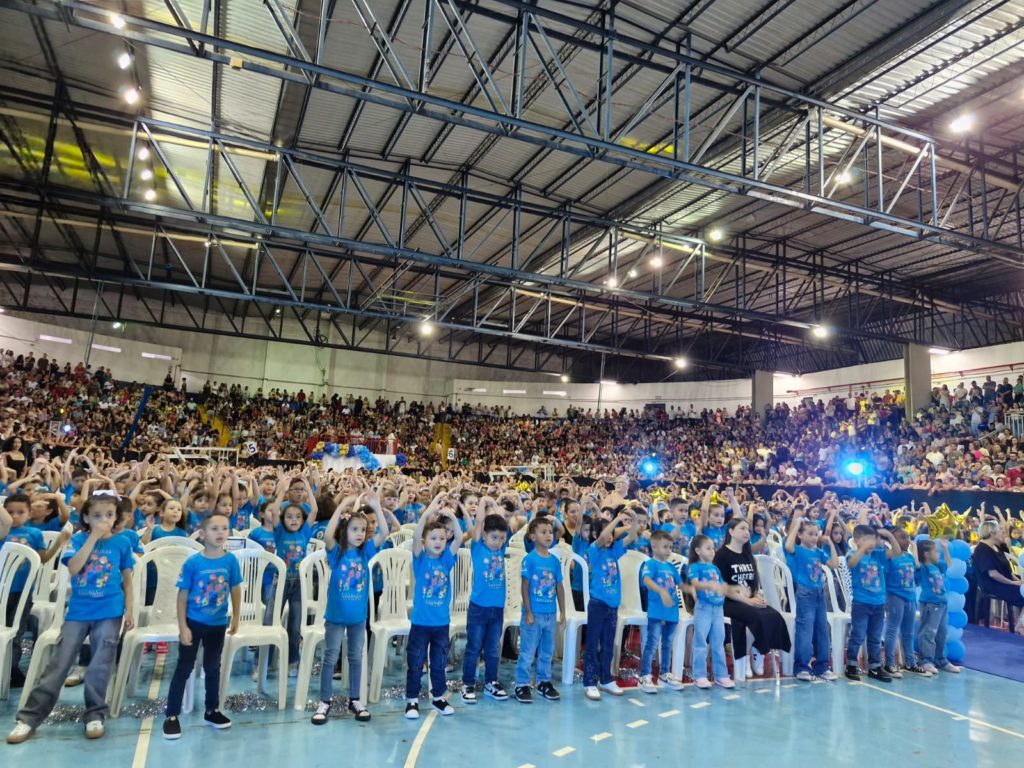 A Prefeitura de Apucarana realizou, no sábado (29/11), a formatura dos 1.280 estudantes que concluíram a Educação Infantil na rede municipal de ensino. O Ginásio de Esportes Lagoão ficou lotado com familiares que acompanharam a entrega do primeiro certificado escolar às crianças.