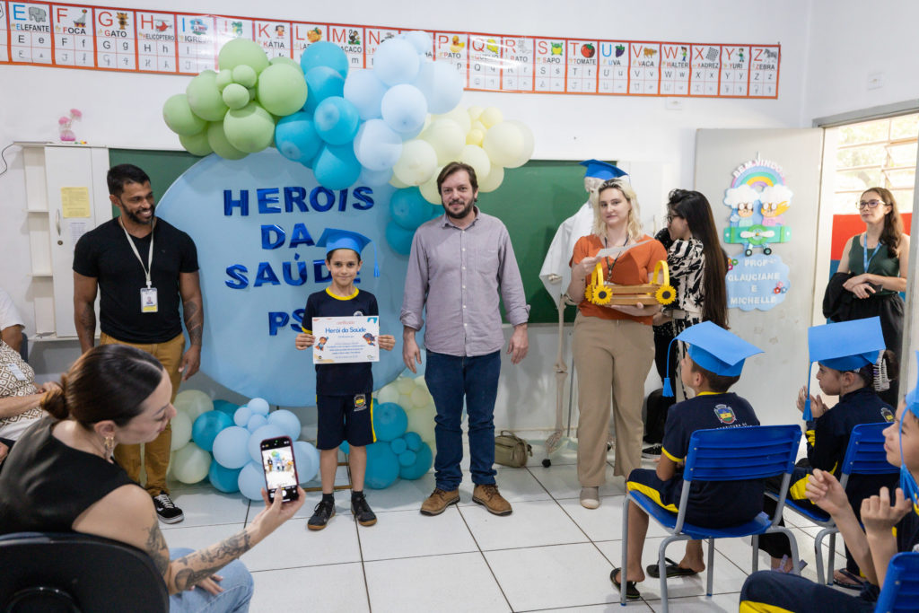 O secretário municipal de Saúde, Dr. Guilherme de Paula, participou da entrega dos certificados e ressaltou a importância da integração entre os setores. “Os profissionais da nossa Residência em Atenção Básica ensinaram as crianças sobre alimentação, cuidados com o meio ambiente, prevenção à dengue e outros temas. Agora, elas levarão esse aprendizado para casa, compartilhando com suas famílias. Saúde e educação precisam caminhar sempre juntas”, destacou.
