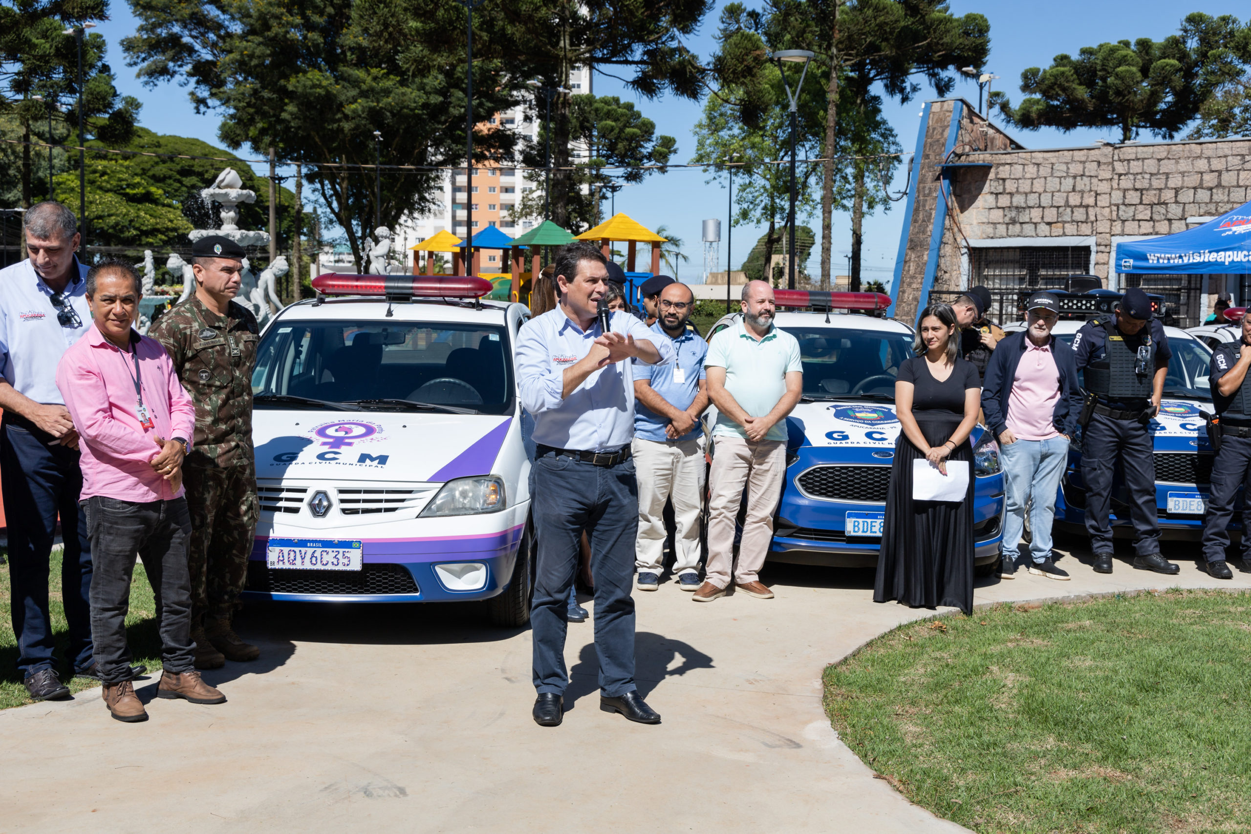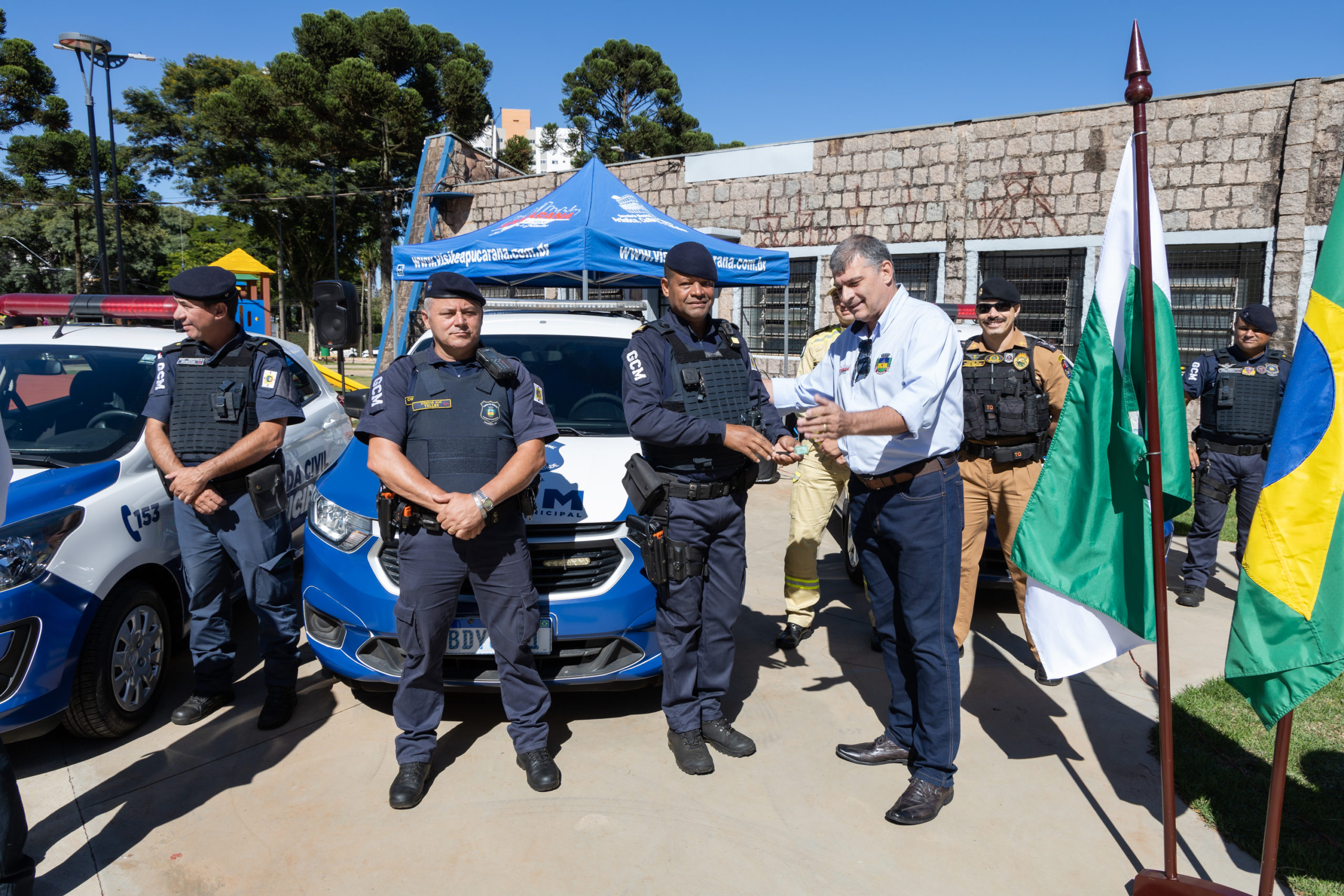 O prefeito Junior da Femac assinou nesta quinta-feira (25/01) o decreto convocando 25 novos guardas civis municipais, aprovados em concurso público. No mesmo ato, realizado na Praça 28 de Janeiro e integrando a programação dos 80 anos de Apucarana, Junior da Femac também fez a entrega de seis viaturas e de kits de Atendimento Pré-hospitalar (APH) para a corporação.