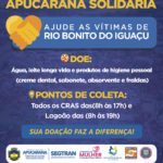 A entrega das doações pode ser feita nos CRAS, de segunda a sexta-feira, das 8h às 17h, e no Ginásio Lagoão, todos os dias, das 8h às 19h. A Prefeitura de Apucarana convida toda a comunidade a participar e reforçar a corrente de solidariedade em apoio às famílias de Rio Bonito do Iguaçu.
