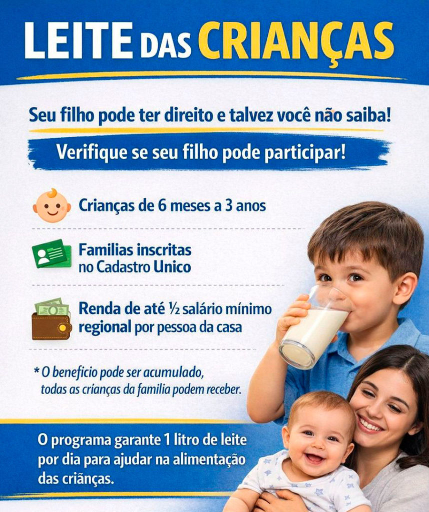 Famílias de Apucarana com crianças pequenas podem receber gratuitamente 1 litro de leite por dia, por meio do Programa Leite das Crianças, do Governo do Estado do Paraná. A iniciativa contribui diretamente para a alimentação infantil e pode beneficiar mais de uma criança por família. A secretária municipal de Assistência Social, Fabíola Carrero, orienta que os responsáveis procurem os pontos