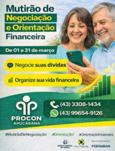 O Procon de Apucarana atende no prédio do Fórum Trabalhista, na Avenida Central do Paraná, 1380, no Jardim Diamantina. A população também pode enviar dúvidas e denúncias pelo WhatsApp 43 99654-7662, pelo telefone 43 3308-1434 ou pelo Instagram @proconapucaranaoficial.